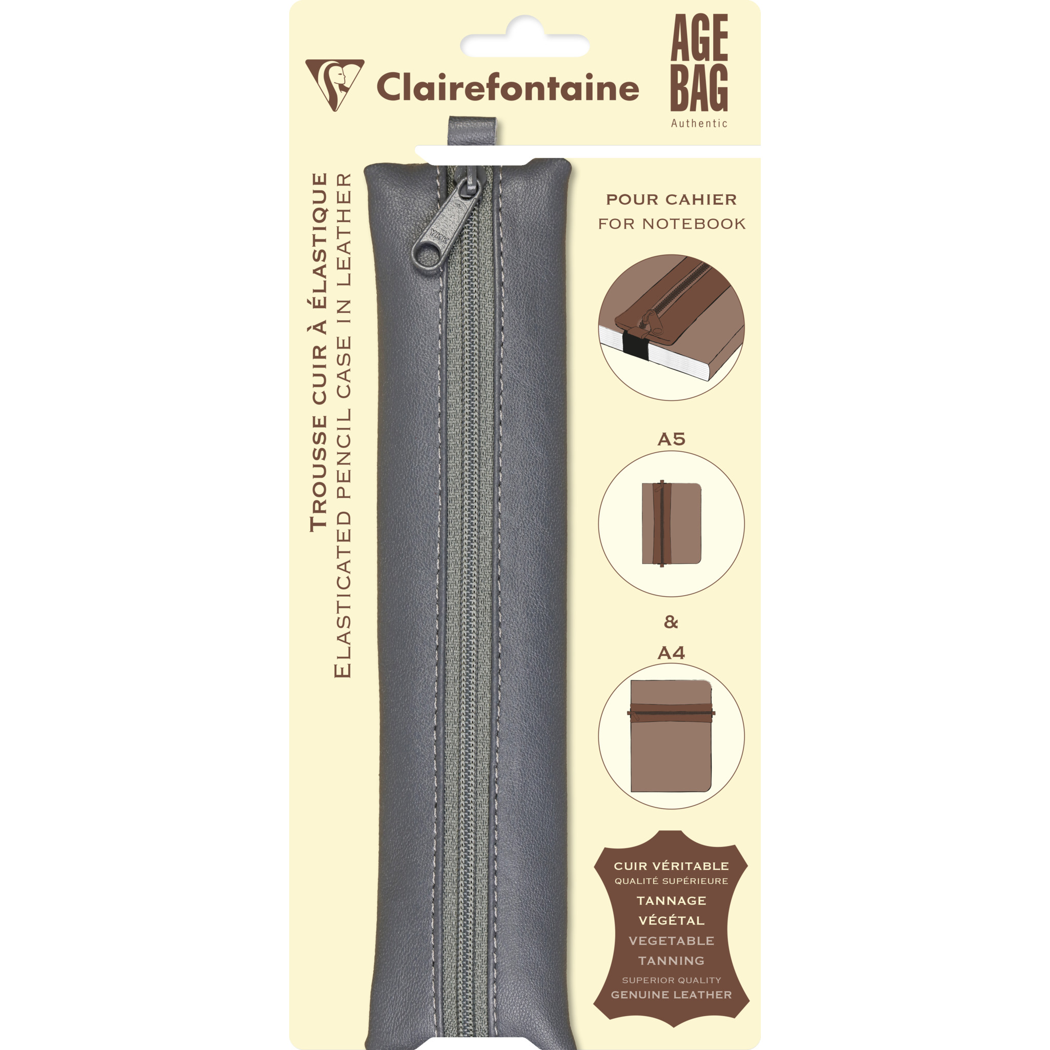Age Bag, Flaches Schlampermäppchen aus Leder für Notizbuch, 20x4,5 cm - Grau