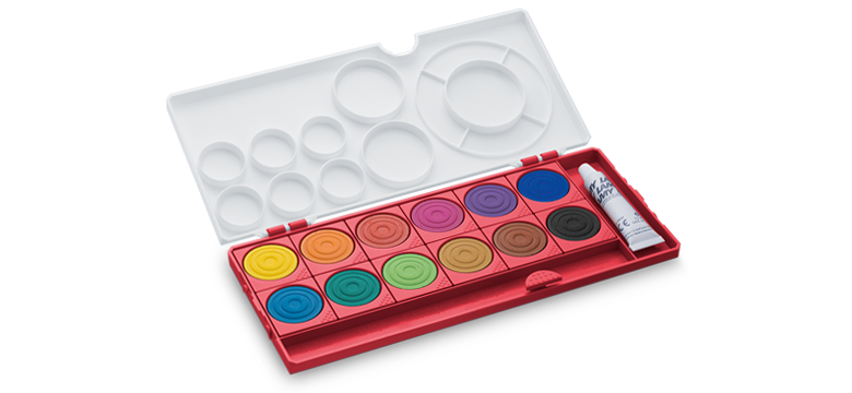 Die Mischfelder im Deckel eröffnen dabei nahezu unbegrenzte Möglichkeiten zum Mischen und Ausprobieren: Der Deckfarbkasten ist ideal für den Schulunterricht und macht mithilfe des Farbkreises nach Johannes Itten Farbenlehre für Kinder spielerisch erlebbar. Und auch erwachsenen Hobbymaler:innen dient er als Inspiration, ihren Werken neue Farbwelten einzuhauchen.