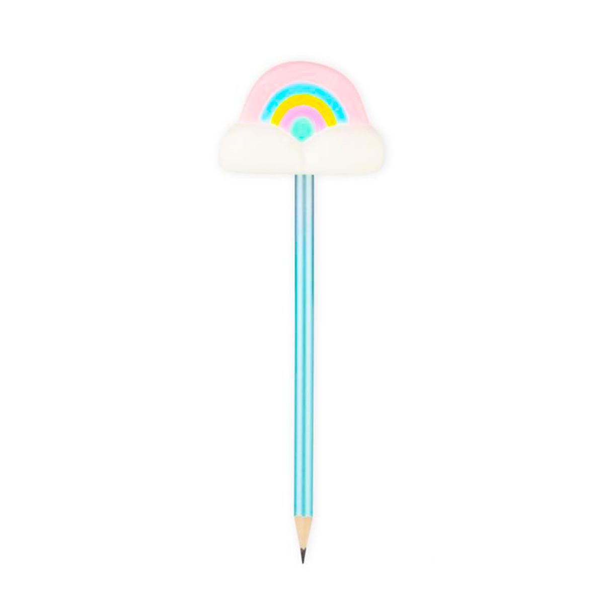 Dein Stück vom Glück immer dabei mit diesem effektvoll-schimmernden Bleistift inkl. super-softem Knautsch-Regenbogen-Topper.