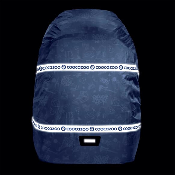 - coocazoo Regenhülle (blau) - zum Schutz vor Schmutz und Nässe, erhöhte Verkehrssicherheit dank großflächigem, reflektierendem Druck, einfach über den Schulrucksack stülpen, Befestigung mittels Gummizug, Befestigungsmöglichkeit für die coocazoo LED-Sicherheits-Klemmleuchte (nicht enthalten), kompatibel mit allen coocazoo Schulrucksäcken