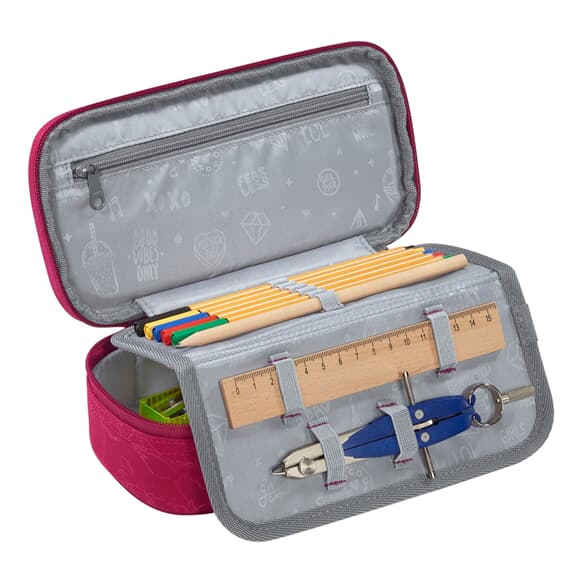 - coocazoo Schlampermäppchen - Etui zum Verstauen von Stiften, Linealen und Co., Reißverschlussfach im Deckel für kleine Dinge, z.B. Tintenpatronen oder Münzen, Stiftehalter für bis zu 6 Stifte, extra Fächer für Lineal, Zirkel und Geodreieck, Stundenplanfach, Organizer-Flap kann via Klettverschluss geöffnet und geschlossen werden