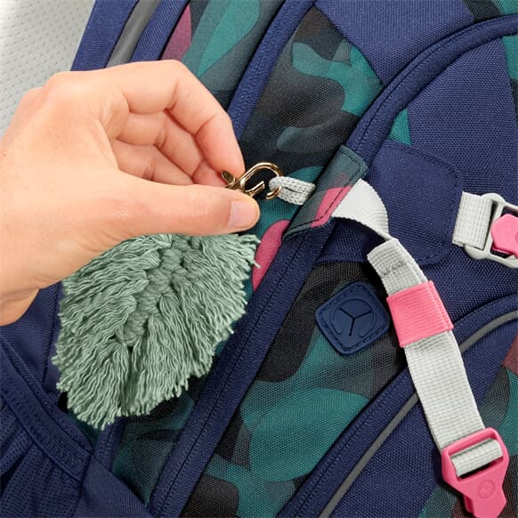 - Innenaufteilung - vier Fächer für alle Schulsachen: zwei große Hauptfächer mit einem integrierten Bücherfach, ein Organizerfach und eine geräumige Fronttasche z.B. für die Brotdose, Anbringungsmöglichkeit von Tablet-/Laptop-Tasche, die je nach Größe und Rucksackmodell an Schlaufen im Organizerfach oder mit Clips am Bücherfach befestigt wird