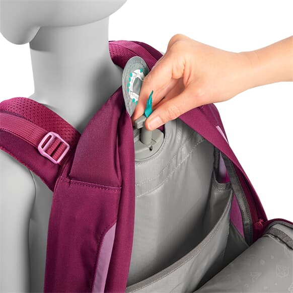 - Innenaufteilung - fünf Fächer für alle Schulsachen: zwei große Hauptfächer mit einem integrierten Bücherfach, ein Organizerfach, eine geräumige Fronttasche und ein weiteres Frontfach z.B. für die Brotdose, Anbringungsmöglichkeit von Tablet-/Laptop-Tasche, die je nach Größe und Rucksackmodell an Schlaufen im Organizerfach oder mit Clips am Bücherfach befestigt wird, zusätzliche Volumenerweiterung um fünf Liter - einfach hintersten Reißverschluss öffnen