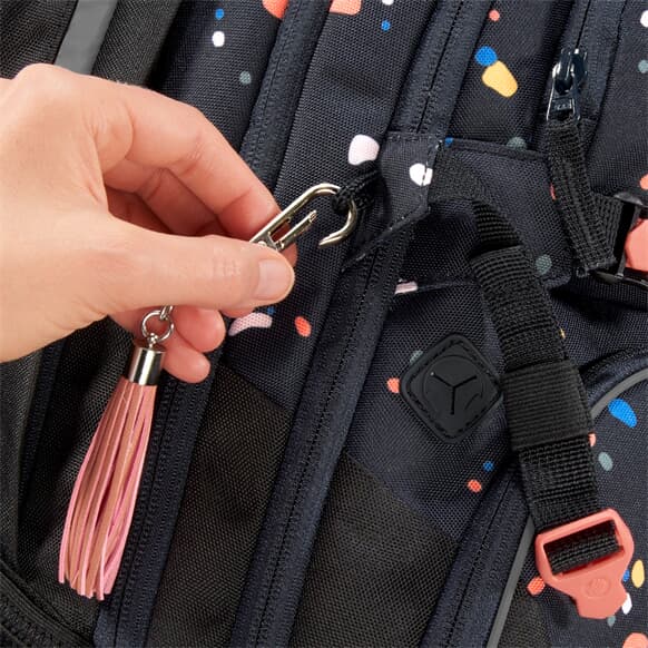 - Innenaufteilung - fünf Fächer für alle Schulsachen: zwei große Hauptfächer mit einem integrierten Bücherfach, ein Organizerfach, eine geräumige Fronttasche und ein weiteres Frontfach z.B. für die Brotdose, Anbringungsmöglichkeit von Tablet-/Laptop-Tasche, die je nach Größe und Rucksackmodell an Schlaufen im Organizerfach oder mit Clips am Bücherfach befestigt wird, zusätzliche Volumenerweiterung um fünf Liter - einfach hintersten Reißverschluss öffnen