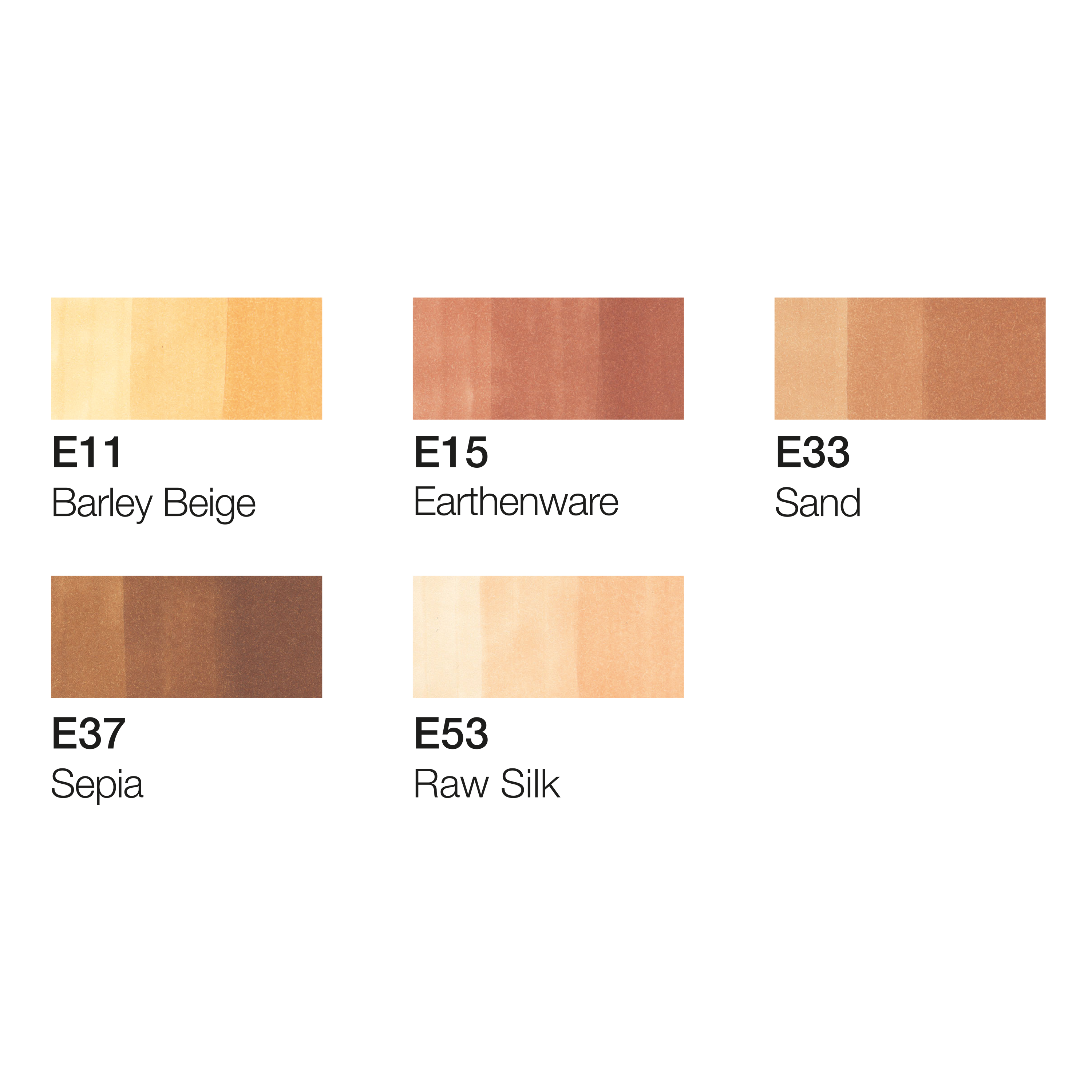 Set mit speziellen Farbtönen, die sich gegenseitig ergänzen und deine Farbsammlung erweitern. Copic Ciao ist der perfekte Grafikmarker für Einsteiger. Die Farben können verblendet oder übereinander gelegt werden, um deiner Zeichnung Tiefe und Struktur zu verleihen. Die beiden Spitzen - eine Pinselspitze und eine mittelbreite Keilspitze - ermöglichen weiche und präzise Striche. Hergestellt mit Tinte auf Alkohol- und Farbpigmentbasis in professioneller Qualität. Trocknet schnell und verwischt nicht. Nachfüllbar mit Copic Ink, die in 180 Farbtönen erhältlich ist. Das Set enthält einen Copic Multiliner (black, 0.3 mm), mit dem eine gleichmäßige Linienführung und Präzision möglich ist. So ist er perfekt für Konturen und letzte Feinarbeiten geeignet. Wenn die wasserfeste Tinte auf Pigmentbasis vollständig getrocknet ist, blutet sie bei Kontakt mit Wasser nicht aus. Enthaltene Farben: E11 (Bareley Beige), E15 (Dark Suntan), E33 (Sand), E37 (Sepia), E53 (Raw Silk).