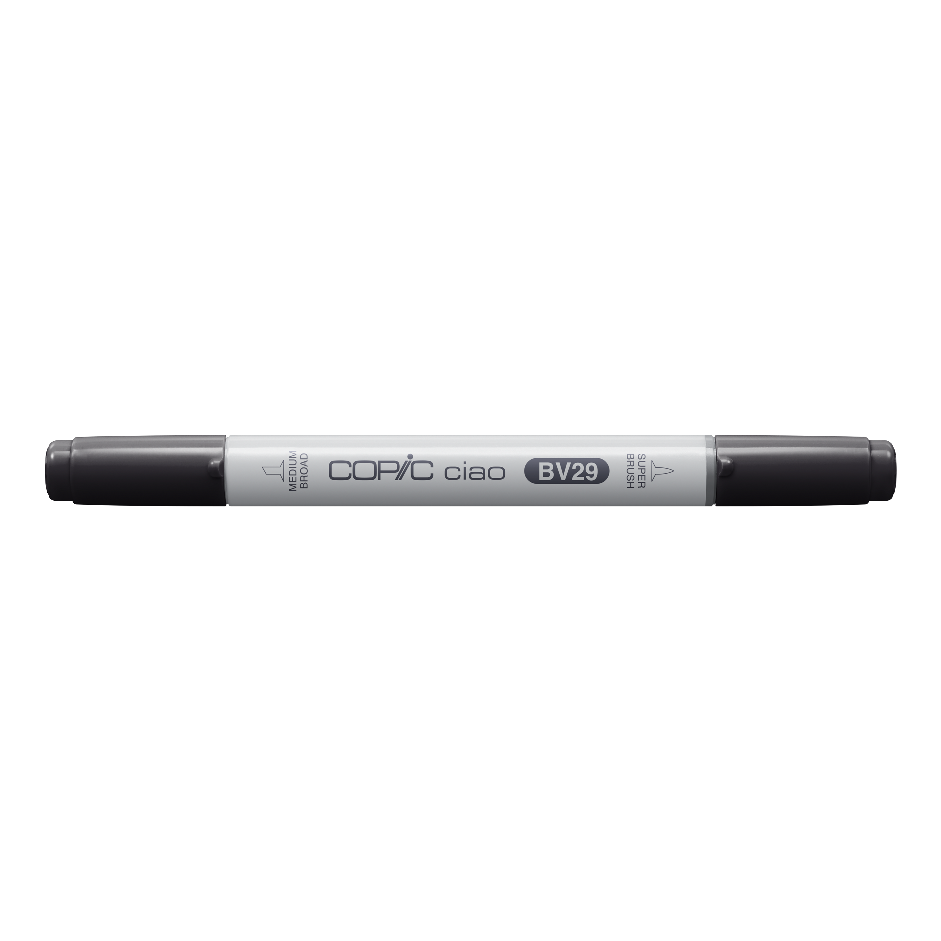 Copic Ciao Marker BV29, der preisgünstige, doppelseitige Allround-Marker in 180 Farben. Der Copic Ciao bietet Newcomern viele Produktvorteile, die bereits den Copic classic und den Copic Sketch aus dem Profilager ausgezeichnet haben. Ausgestattet mit einer universell einsetzbaren, mittelbreiten Spitze, verfügt er außerdem über eine flexible Pinselspitze. Mit dieser können weiche Striche mit interessanten Modulationen erzielt werden. Der Ciao Marker ist daher für Modedesign und Kalligrafie, zum Skizzieren, Scribblen und Layouten perfekt einsetzbar. Insbesondere Hobbykünstler & Mangaka bevorzugen den Copic Ciao, u.a. zum Kolorieren von Scrapbookings, Stempelkunst und handgemachten Karten. Die eingefärbten Kappen ermöglichen eine schnelle und exakte Identifizierung der Farbtöne. Die 180 leuchtenden Farben auf Alkoholbasis sind toxikologisch unbedenklich und nahezu geruchlos. Die Tinte trocknet schnell, verwischt nicht und kann auf der Fläche gemischt und übereinandergelegt werden. Alle erhältlichen 180 Farben können mit Copic Ink farbidentisch wieder aufgefüllt werden. Mit einer einzigen Nachfüll-Flasche kann der Marker 9 x wieder aufgefüllt werden. Das garantiert ein optimales Kosten-Nutzen-Verhältnis, ist umweltfreundlich und wirtschaftlich.