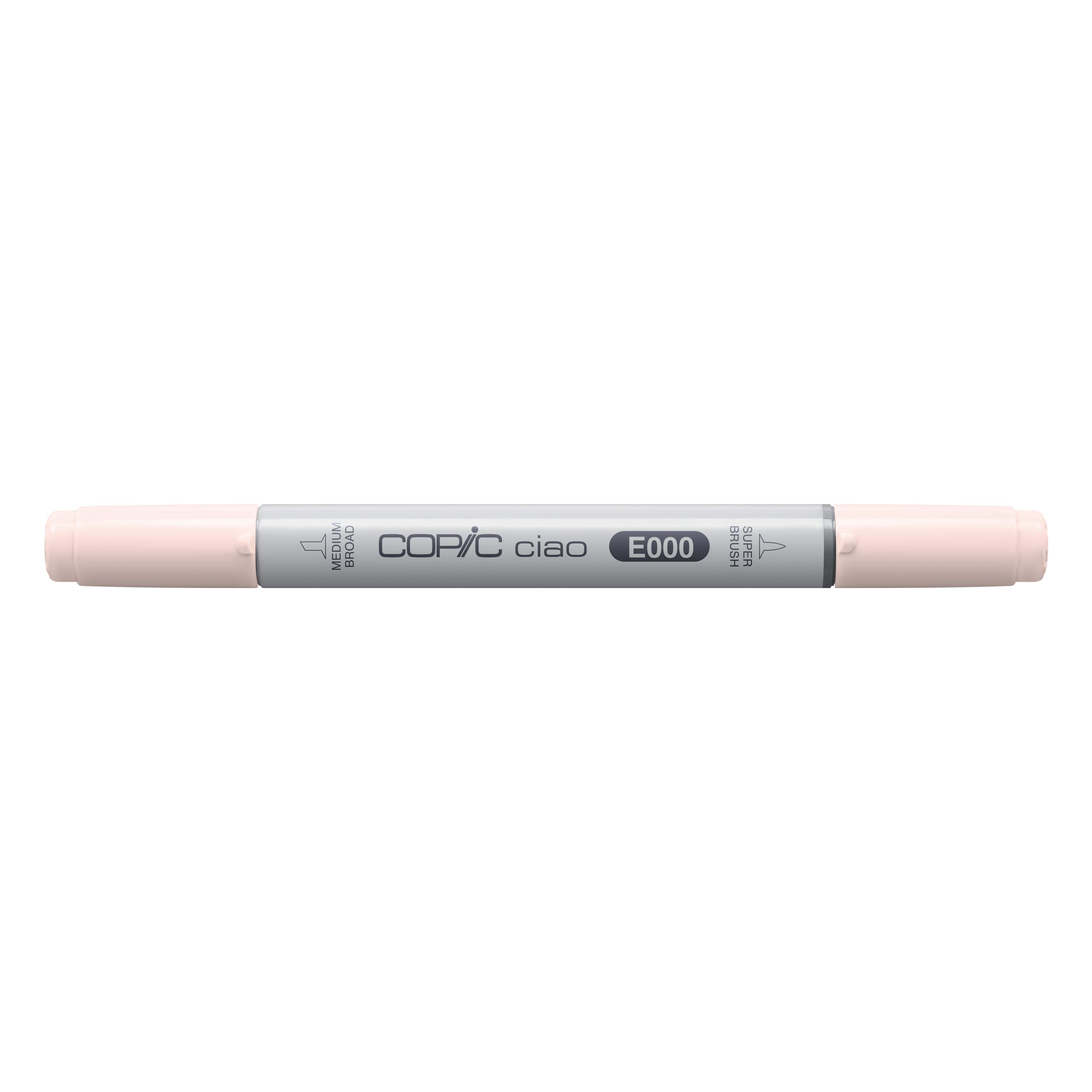 Copic Ciao Marker E000, der preisgünstige, doppelseitige Allround-Marker in 180 Farben. Der Copic Ciao bietet Newcomern viele Produktvorteile, die bereits den Copic classic und den Copic Sketch aus dem Profilager ausgezeichnet haben. Ausgestattet mit einer universell einsetzbaren, mittelbreiten Spitze, verfügt er außerdem über eine flexible Pinselspitze. Mit dieser können weiche Striche mit interessanten Modulationen erzielt werden. Der Ciao Marker ist daher für Modedesign und Kalligrafie, zum Skizzieren, Scribblen und Layouten perfekt einsetzbar. Insbesondere Hobbykünstler & Mangaka bevorzugen den Copic Ciao, u.a. zum Kolorieren von Scrapbookings, Stempelkunst und handgemachten Karten. Die eingefärbten Kappen ermöglichen eine schnelle und exakte Identifizierung der Farbtöne. Die 180 leuchtenden Farben auf Alkoholbasis sind toxikologisch unbedenklich und nahezu geruchlos. Die Tinte trocknet schnell, verwischt nicht und kann auf der Fläche gemischt und übereinandergelegt werden. Alle erhältlichen 180 Farben können mit Copic Ink farbidentisch wieder aufgefüllt werden. Mit einer einzigen Nachfüll-Flasche kann der Marker 9 x wieder aufgefüllt werden. Das garantiert ein optimales Kosten-Nutzen-Verhältnis, ist umweltfreundlich und wirtschaftlich.