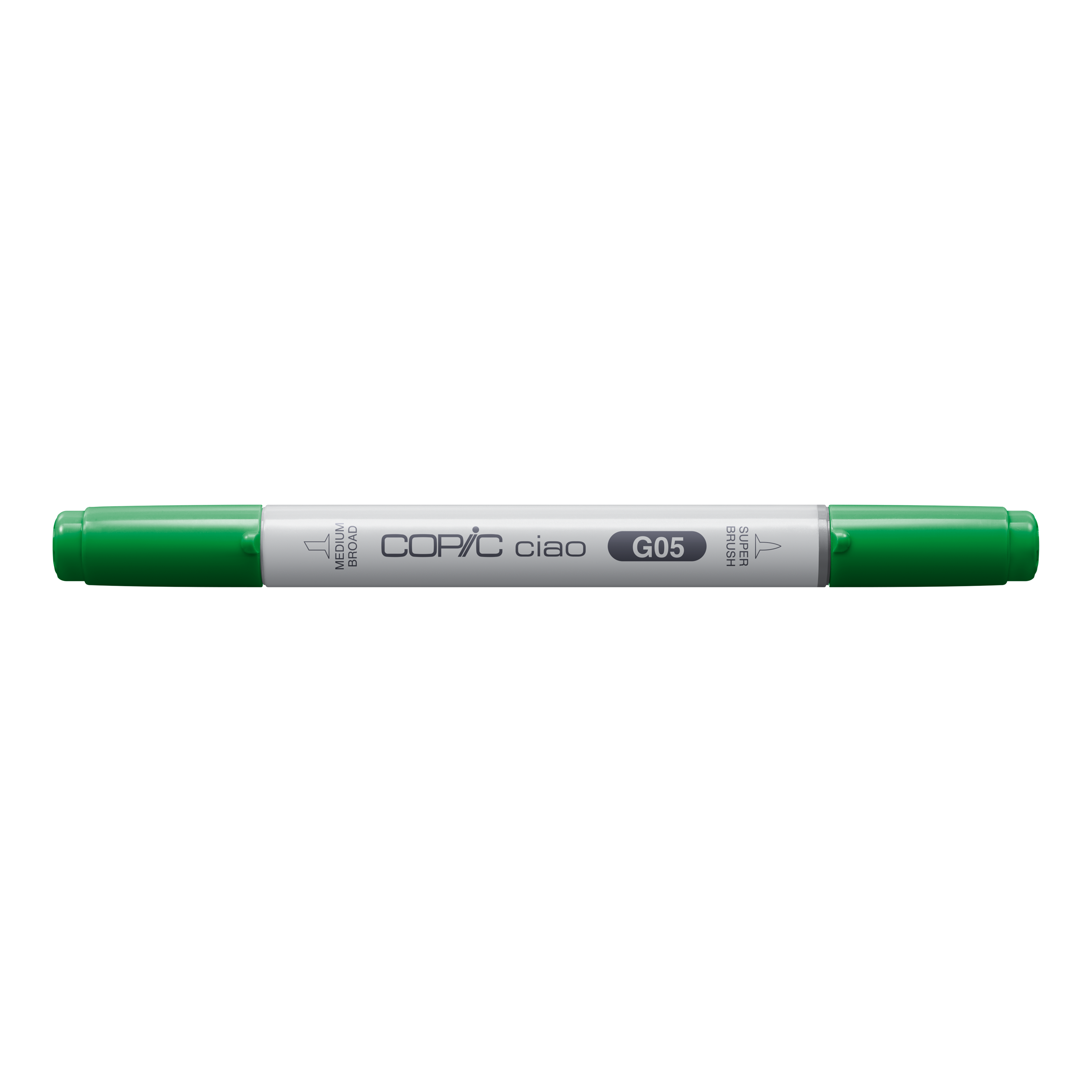 Copic Ciao Marker G05, der preisgünstige, doppelseitige Allround-Marker in 180 Farben. Der Copic Ciao bietet Newcomern viele Produktvorteile, die bereits den Copic classic und den Copic Sketch aus dem Profilager ausgezeichnet haben. Ausgestattet mit einer universell einsetzbaren, mittelbreiten Spitze, verfügt er außerdem über eine flexible Pinselspitze. Mit dieser können weiche Striche mit interessanten Modulationen erzielt werden. Der Ciao Marker ist daher für Modedesign und Kalligrafie, zum Skizzieren, Scribblen und Layouten perfekt einsetzbar. Insbesondere Hobbykünstler & Mangaka bevorzugen den Copic Ciao, u.a. zum Kolorieren von Scrapbookings, Stempelkunst und handgemachten Karten. Die eingefärbten Kappen ermöglichen eine schnelle und exakte Identifizierung der Farbtöne. Die 180 leuchtenden Farben auf Alkoholbasis sind toxikologisch unbedenklich und nahezu geruchlos. Die Tinte trocknet schnell, verwischt nicht und kann auf der Fläche gemischt und übereinandergelegt werden. Alle erhältlichen 180 Farben können mit Copic Ink farbidentisch wieder aufgefüllt werden. Mit einer einzigen Nachfüll-Flasche kann der Marker 9 x wieder aufgefüllt werden. Das garantiert ein optimales Kosten-Nutzen-Verhältnis, ist umweltfreundlich und wirtschaftlich.