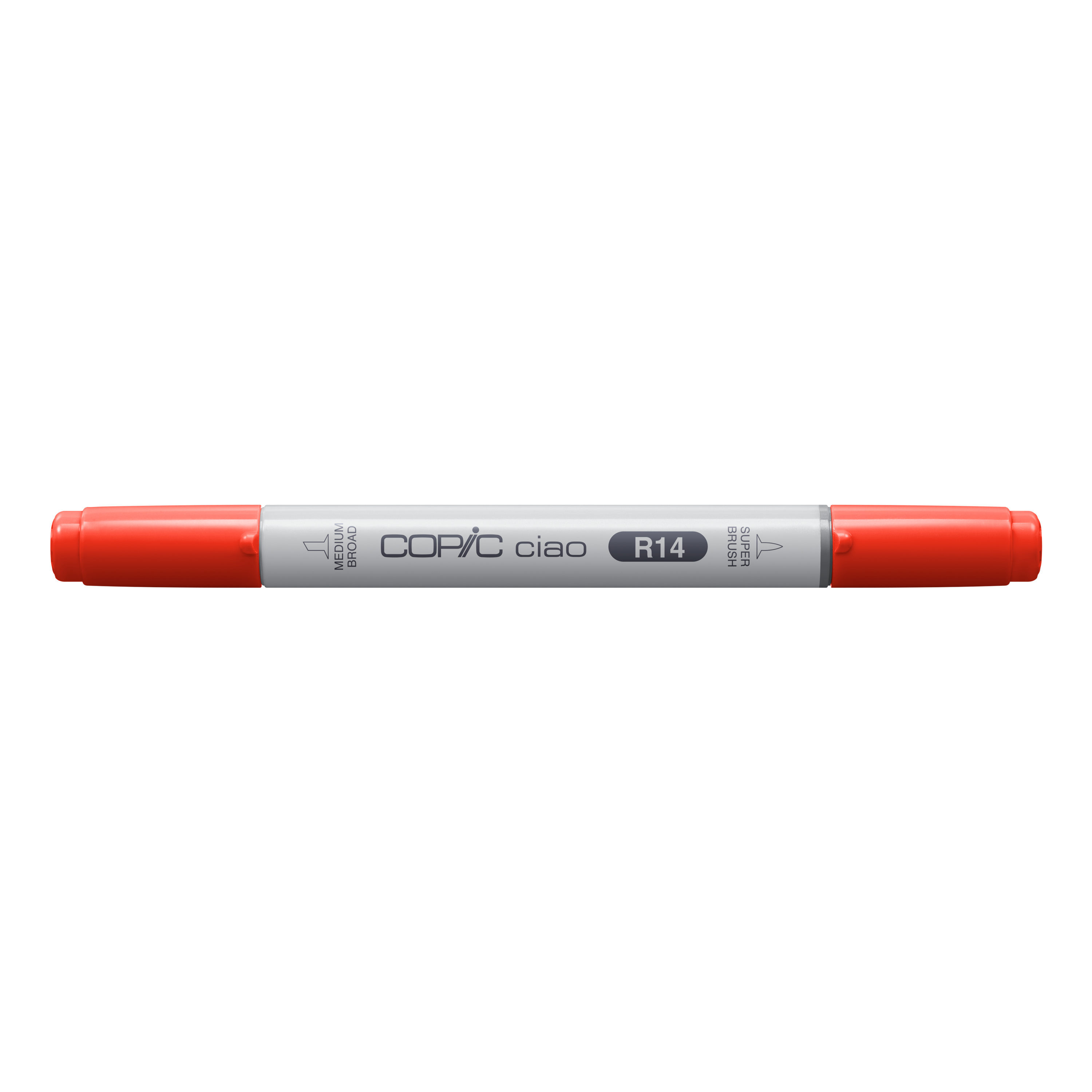 Copic Ciao Marker R14, der preisgünstige, doppelseitige Allround-Marker in 180 Farben. Der Copic Ciao bietet Newcomern viele Produktvorteile, die bereits den Copic classic und den Copic Sketch aus dem Profilager ausgezeichnet haben. Ausgestattet mit einer universell einsetzbaren, mittelbreiten Spitze, verfügt er außerdem über eine flexible Pinselspitze. Mit dieser können weiche Striche mit interessanten Modulationen erzielt werden. Der Ciao Marker ist daher für Modedesign und Kalligrafie, zum Skizzieren, Scribblen und Layouten perfekt einsetzbar. Insbesondere Hobbykünstler & Mangaka bevorzugen den Copic Ciao, u.a. zum Kolorieren von Scrapbookings, Stempelkunst und handgemachten Karten. Die eingefärbten Kappen ermöglichen eine schnelle und exakte Identifizierung der Farbtöne. Die 180 leuchtenden Farben auf Alkoholbasis sind toxikologisch unbedenklich und nahezu geruchlos. Die Tinte trocknet schnell, verwischt nicht und kann auf der Fläche gemischt und übereinandergelegt werden. Alle erhältlichen 180 Farben können mit Copic Ink farbidentisch wieder aufgefüllt werden. Mit einer einzigen Nachfüll-Flasche kann der Marker 9 x wieder aufgefüllt werden. Das garantiert ein optimales Kosten-Nutzen-Verhältnis, ist umweltfreundlich und wirtschaftlich.