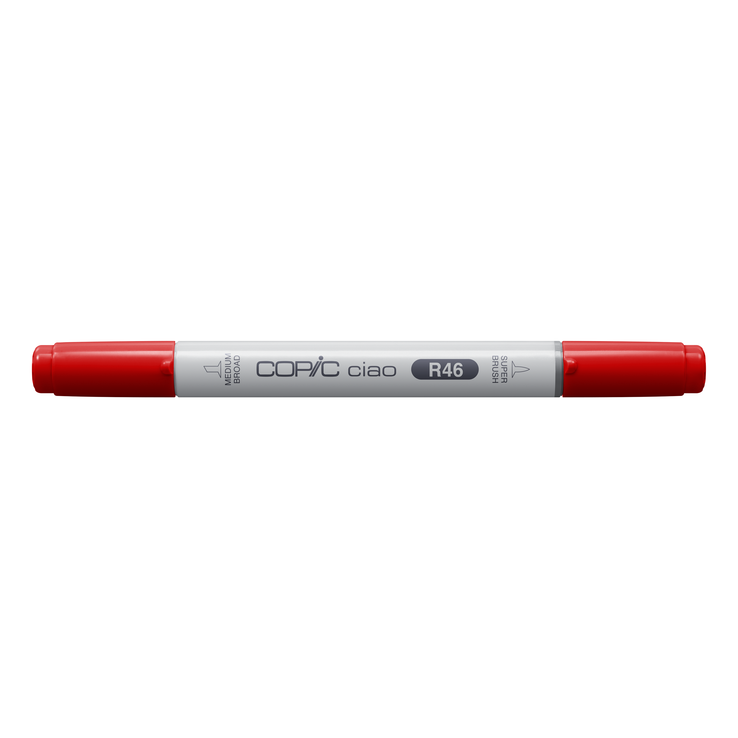 Copic Ciao Marker R46, der preisgünstige, doppelseitige Allround-Marker in 180 Farben. Der Copic Ciao bietet Newcomern viele Produktvorteile, die bereits den Copic classic und den Copic Sketch aus dem Profilager ausgezeichnet haben. Ausgestattet mit einer universell einsetzbaren, mittelbreiten Spitze, verfügt er außerdem über eine flexible Pinselspitze. Mit dieser können weiche Striche mit interessanten Modulationen erzielt werden. Der Ciao Marker ist daher für Modedesign und Kalligrafie, zum Skizzieren, Scribblen und Layouten perfekt einsetzbar. Insbesondere Hobbykünstler & Mangaka bevorzugen den Copic Ciao, u.a. zum Kolorieren von Scrapbookings, Stempelkunst und handgemachten Karten. Die eingefärbten Kappen ermöglichen eine schnelle und exakte Identifizierung der Farbtöne. Die 180 leuchtenden Farben auf Alkoholbasis sind toxikologisch unbedenklich und nahezu geruchlos. Die Tinte trocknet schnell, verwischt nicht und kann auf der Fläche gemischt und übereinandergelegt werden. Alle erhältlichen 180 Farben können mit Copic Ink farbidentisch wieder aufgefüllt werden. Mit einer einzigen Nachfüll-Flasche kann der Marker 9 x wieder aufgefüllt werden. Das garantiert ein optimales Kosten-Nutzen-Verhältnis, ist umweltfreundlich und wirtschaftlich.