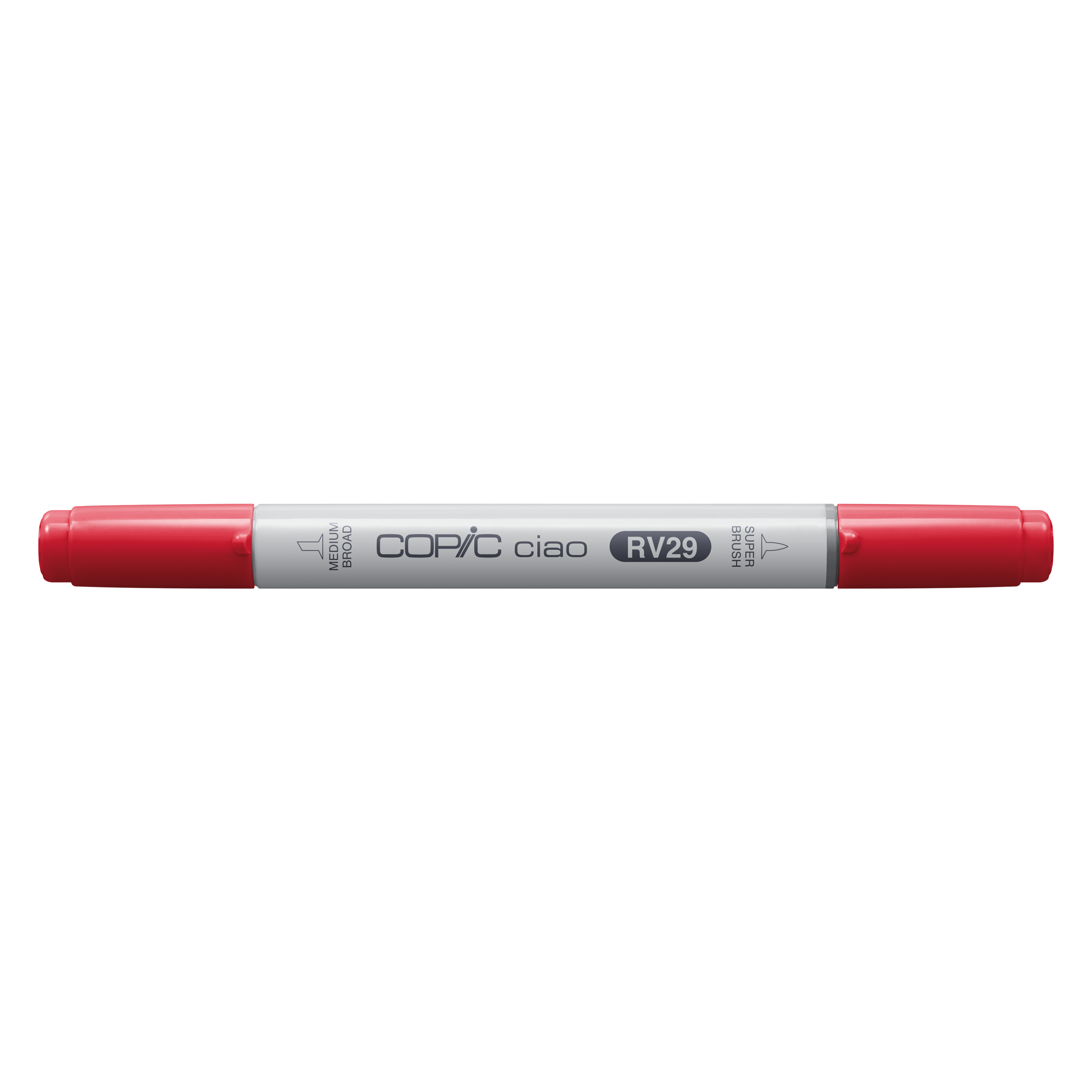 Copic Ciao Marker RV29, der preisgünstige, doppelseitige Allround-Marker in 180 Farben. Der Copic Ciao bietet Newcomern viele Produktvorteile, die bereits den Copic classic und den Copic Sketch aus dem Profilager ausgezeichnet haben. Ausgestattet mit einer universell einsetzbaren, mittelbreiten Spitze, verfügt er außerdem über eine flexible Pinselspitze. Mit dieser können weiche Striche mit interessanten Modulationen erzielt werden. Der Ciao Marker ist daher für Modedesign und Kalligrafie, zum Skizzieren, Scribblen und Layouten perfekt einsetzbar. Insbesondere Hobbykünstler & Mangaka bevorzugen den Copic Ciao, u.a. zum Kolorieren von Scrapbookings, Stempelkunst und handgemachten Karten. Die eingefärbten Kappen ermöglichen eine schnelle und exakte Identifizierung der Farbtöne. Die 180 leuchtenden Farben auf Alkoholbasis sind toxikologisch unbedenklich und nahezu geruchlos. Die Tinte trocknet schnell, verwischt nicht und kann auf der Fläche gemischt und übereinandergelegt werden. Alle erhältlichen 180 Farben können mit Copic Ink farbidentisch wieder aufgefüllt werden. Mit einer einzigen Nachfüll-Flasche kann der Marker 9 x wieder aufgefüllt werden. Das garantiert ein optimales Kosten-Nutzen-Verhältnis, ist umweltfreundlich und wirtschaftlich.
