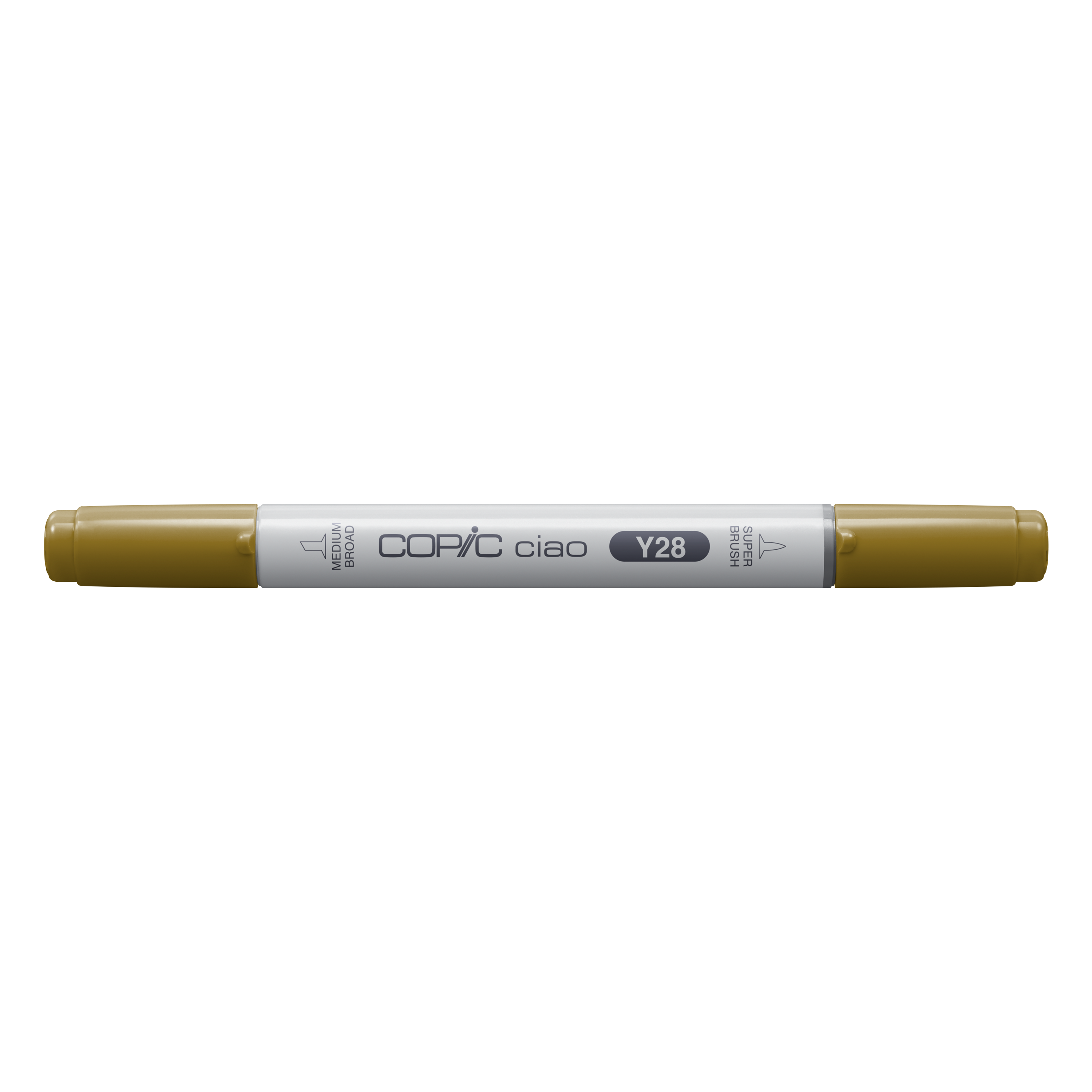 Copic Ciao Marker Y28, der preisgünstige, doppelseitige Allround-Marker in 180 Farben. Der Copic Ciao bietet Newcomern viele Produktvorteile, die bereits den Copic classic und den Copic Sketch aus dem Profilager ausgezeichnet haben. Ausgestattet mit einer universell einsetzbaren, mittelbreiten Spitze, verfügt er außerdem über eine flexible Pinselspitze. Mit dieser können weiche Striche mit interessanten Modulationen erzielt werden. Der Ciao Marker ist daher für Modedesign und Kalligrafie, zum Skizzieren, Scribblen und Layouten perfekt einsetzbar. Insbesondere Hobbykünstler & Mangaka bevorzugen den Copic Ciao, u.a. zum Kolorieren von Scrapbookings, Stempelkunst und handgemachten Karten. Die eingefärbten Kappen ermöglichen eine schnelle und exakte Identifizierung der Farbtöne. Die 180 leuchtenden Farben auf Alkoholbasis sind toxikologisch unbedenklich und nahezu geruchlos. Die Tinte trocknet schnell, verwischt nicht und kann auf der Fläche gemischt und übereinandergelegt werden. Alle erhältlichen 180 Farben können mit Copic Ink farbidentisch wieder aufgefüllt werden. Mit einer einzigen Nachfüll-Flasche kann der Marker 9 x wieder aufgefüllt werden. Das garantiert ein optimales Kosten-Nutzen-Verhältnis, ist umweltfreundlich und wirtschaftlich.