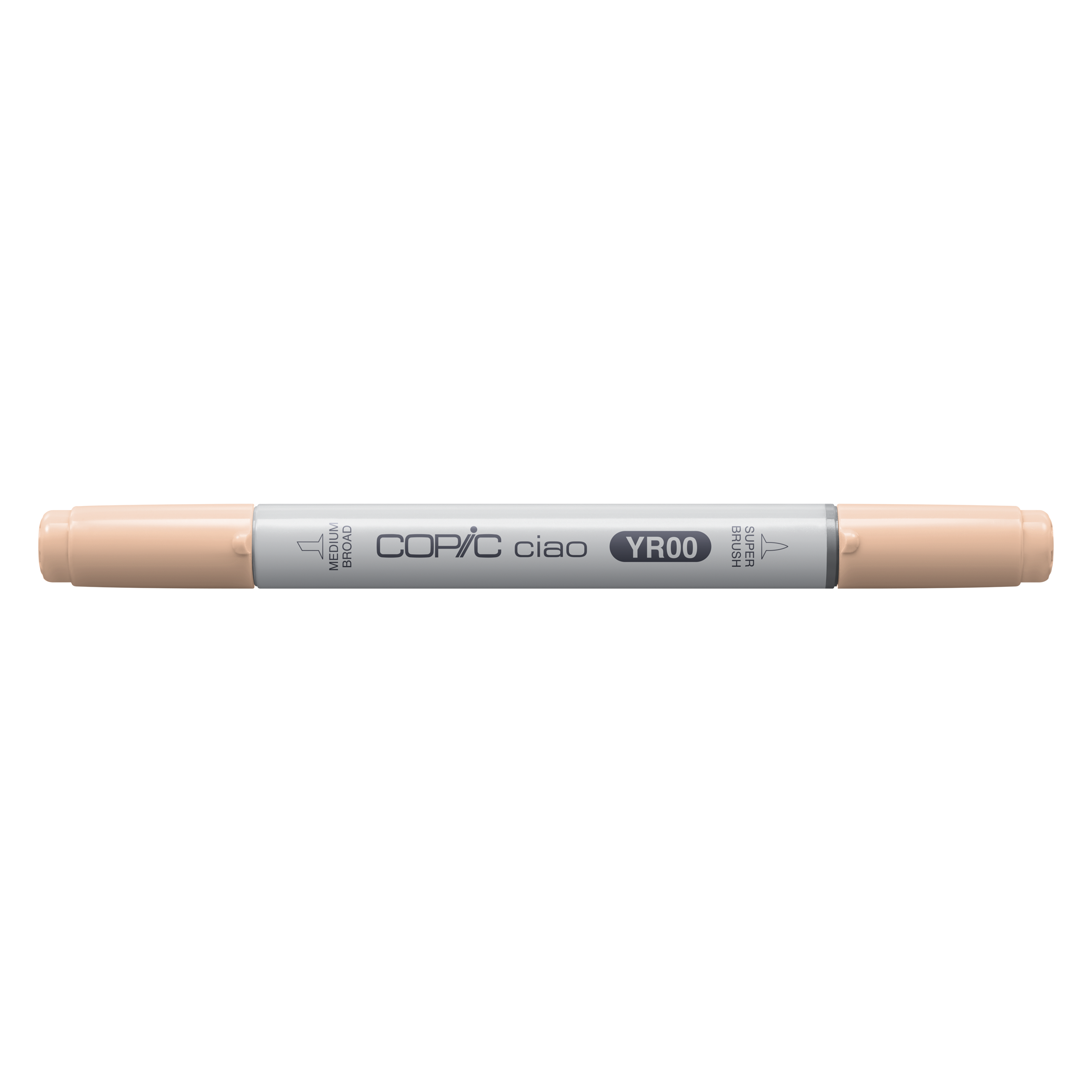 Copic Ciao Marker YR00, der preisgünstige, doppelseitige Allround-Marker in 180 Farben. Der Copic Ciao bietet Newcomern viele Produktvorteile, die bereits den Copic classic und den Copic Sketch aus dem Profilager ausgezeichnet haben. Ausgestattet mit einer universell einsetzbaren, mittelbreiten Spitze, verfügt er außerdem über eine flexible Pinselspitze. Mit dieser können weiche Striche mit interessanten Modulationen erzielt werden. Der Ciao Marker ist daher für Modedesign und Kalligrafie, zum Skizzieren, Scribblen und Layouten perfekt einsetzbar. Insbesondere Hobbykünstler & Mangaka bevorzugen den Copic Ciao, u.a. zum Kolorieren von Scrapbookings, Stempelkunst und handgemachten Karten. Die eingefärbten Kappen ermöglichen eine schnelle und exakte Identifizierung der Farbtöne. Die 180 leuchtenden Farben auf Alkoholbasis sind toxikologisch unbedenklich und nahezu geruchlos. Die Tinte trocknet schnell, verwischt nicht und kann auf der Fläche gemischt und übereinandergelegt werden. Alle erhältlichen 180 Farben können mit Copic Ink farbidentisch wieder aufgefüllt werden. Mit einer einzigen Nachfüll-Flasche kann der Marker 9 x wieder aufgefüllt werden. Das garantiert ein optimales Kosten-Nutzen-Verhältnis, ist umweltfreundlich und wirtschaftlich.