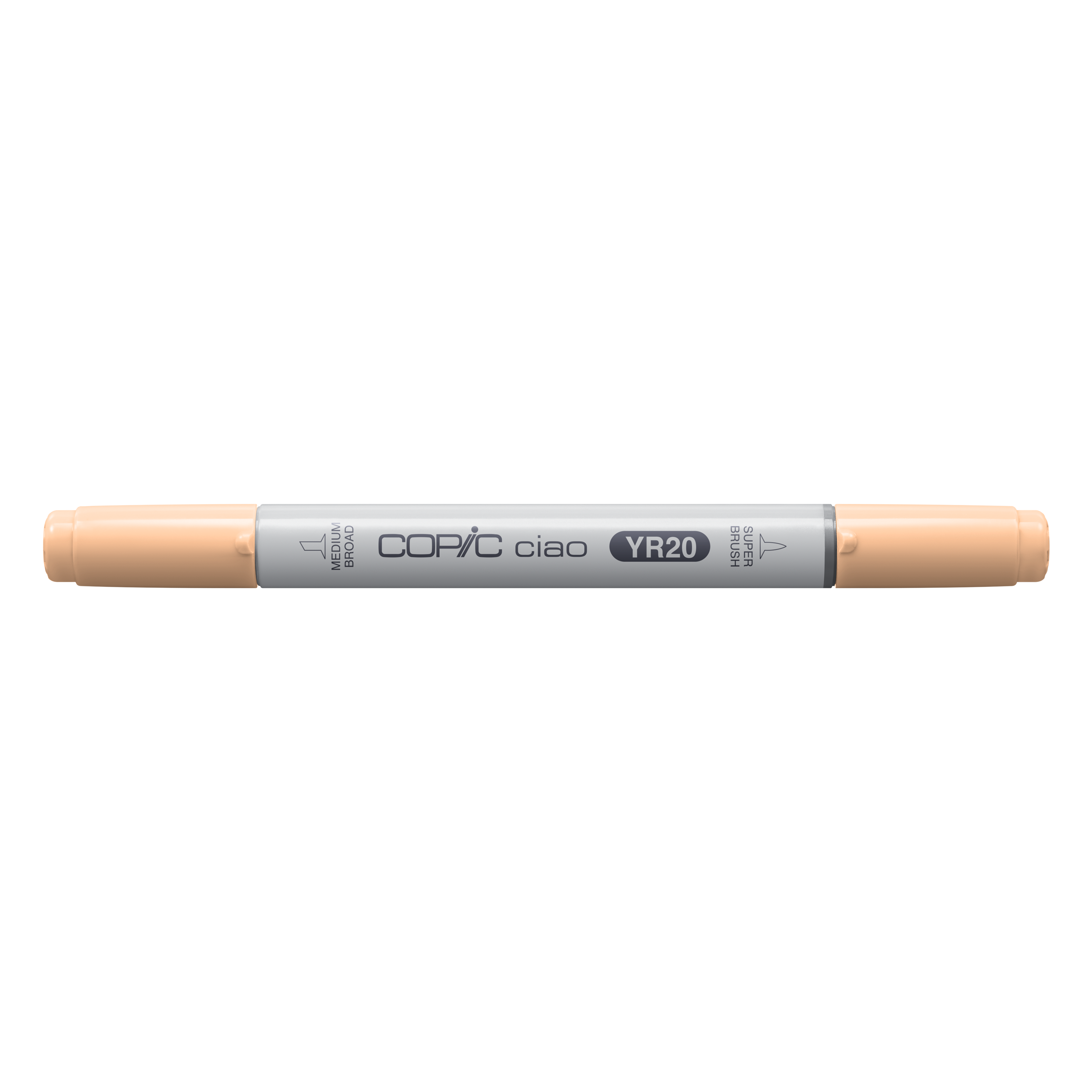 Copic Ciao Marker YR20, der preisgünstige, doppelseitige Allround-Marker in 180 Farben. Der Copic Ciao bietet Newcomern viele Produktvorteile, die bereits den Copic classic und den Copic Sketch aus dem Profilager ausgezeichnet haben. Ausgestattet mit einer universell einsetzbaren, mittelbreiten Spitze, verfügt er außerdem über eine flexible Pinselspitze. Mit dieser können weiche Striche mit interessanten Modulationen erzielt werden. Der Ciao Marker ist daher für Modedesign und Kalligrafie, zum Skizzieren, Scribblen und Layouten perfekt einsetzbar. Insbesondere Hobbykünstler & Mangaka bevorzugen den Copic Ciao, u.a. zum Kolorieren von Scrapbookings, Stempelkunst und handgemachten Karten. Die eingefärbten Kappen ermöglichen eine schnelle und exakte Identifizierung der Farbtöne. Die 180 leuchtenden Farben auf Alkoholbasis sind toxikologisch unbedenklich und nahezu geruchlos. Die Tinte trocknet schnell, verwischt nicht und kann auf der Fläche gemischt und übereinandergelegt werden. Alle erhältlichen 180 Farben können mit Copic Ink farbidentisch wieder aufgefüllt werden. Mit einer einzigen Nachfüll-Flasche kann der Marker 9 x wieder aufgefüllt werden. Das garantiert ein optimales Kosten-Nutzen-Verhältnis, ist umweltfreundlich und wirtschaftlich.