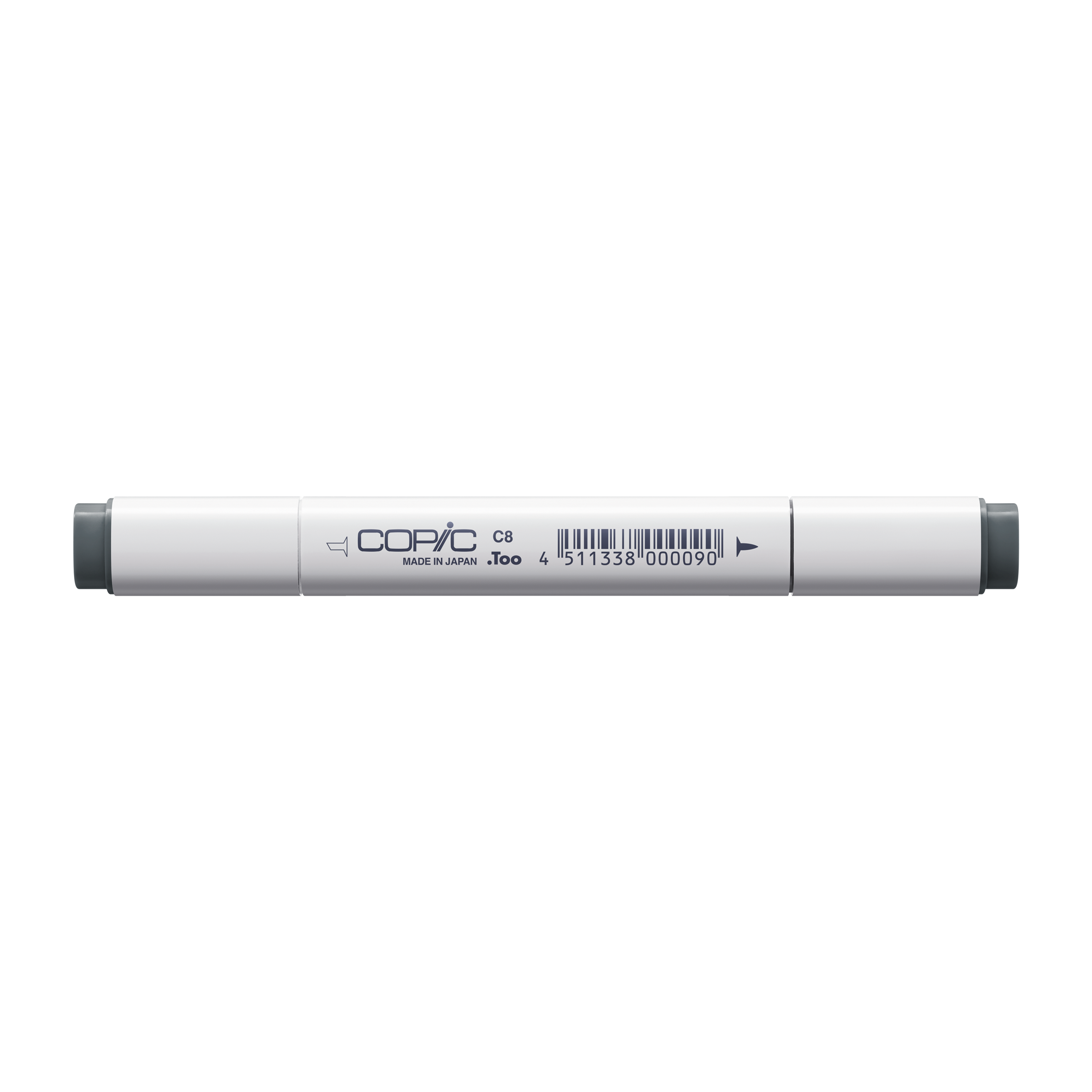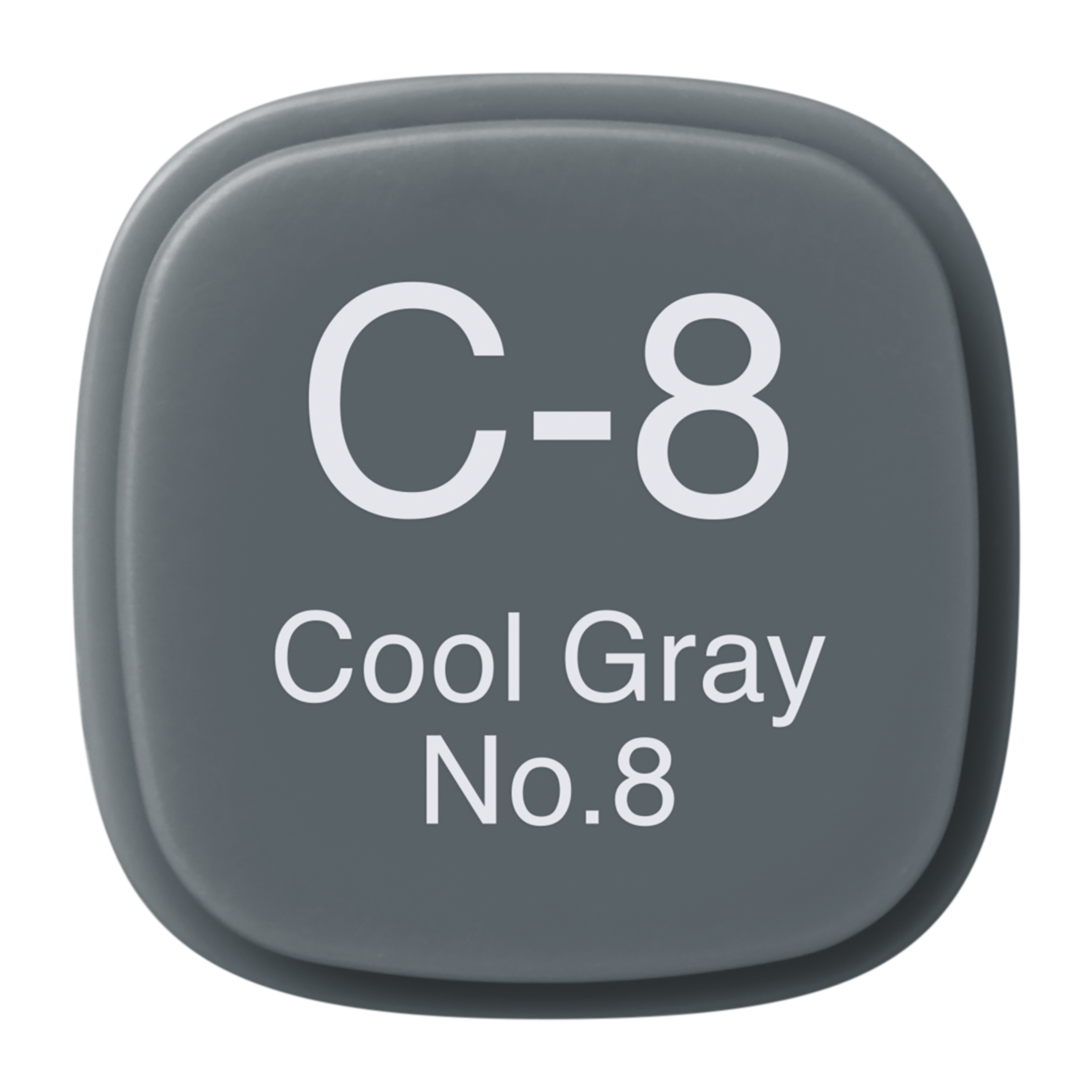 Copic Marker C8, Cool Gray. Professioneller Copic Layoutmarker in 213 Farben (+ neutralem Blender), ausgestattet mit einer breiten und einer feinen Polyester-Spitze. Für unterschiedliche Anwendungen ist er außerdem mit 7 weiteren Spitzen umrüstbar (inkl. Kalligrafie-Spitze). Der Copic Marker ist das ideale Handwerkszeug für professionelle Gestalter wie Grafiker, Architekten, Mode- und Industrie-Designer. Ideal für die Layout- & Entwurfstechnik, für Illustrationen, Scribbles & Storyboards, Stoffdesigns, Airbrush-Arbeiten, technische Zeichnungen, Kalligrafien etc. Das umfangreiche Copic Zubehör, das ständig erweitert und ergänzt wird, macht unterschiedliche Anwendungen möglich. Die Tinte des Copic Markers ist auf Alkoholbasis, toxikologisch unbedenklich und nahezu geruchlos. Sie trocknet schnell und verwischt nicht. Alle erhältlichen Farben (inklusive 44 Grautönen), können mit Copic Ink farbidentisch wieder aufgefüllt werden. Mit einer einzigen Copic Ink Nachfüllflasche kann der Marker 5 x nachgefüllt werden. Das garantiert ein optimales Kosten-Nutzen-Verhältnis, ist umweltfreundlich und wirtschaftlich.