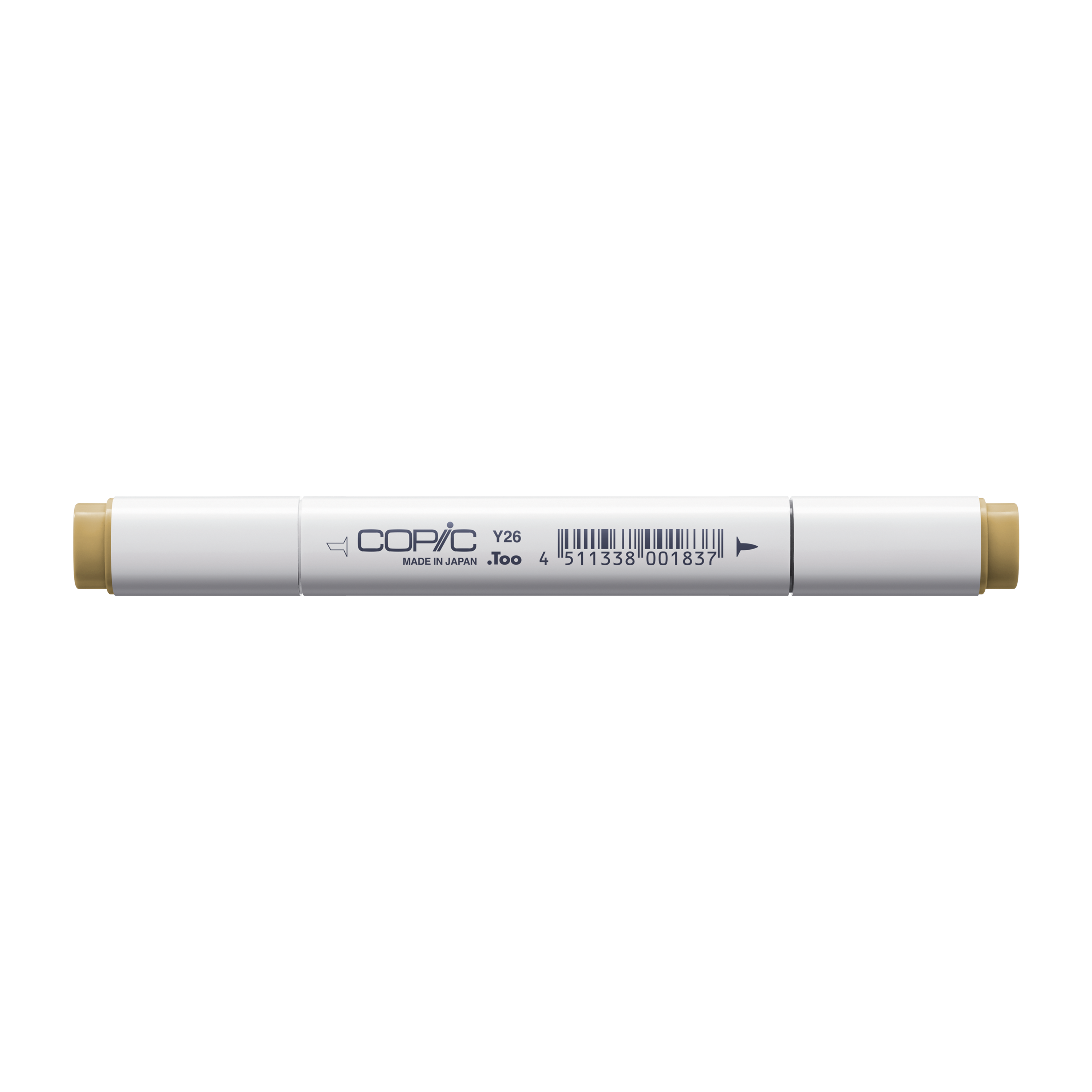 Copic Marker Y26, Mustard. Professioneller Copic Layoutmarker in 213 Farben (+ neutralem Blender), ausgestattet mit einer breiten und einer feinen Polyester-Spitze. Für unterschiedliche Anwendungen ist er außerdem mit 7 weiteren Spitzen umrüstbar (inkl. Kalligrafie-Spitze). Der Copic Marker ist das ideale Handwerkszeug für professionelle Gestalter wie Grafiker, Architekten, Mode- und Industrie-Designer. Ideal für die Layout- & Entwurfstechnik, für Illustrationen, Scribbles & Storyboards, Stoffdesigns, Airbrush-Arbeiten, technische Zeichnungen, Kalligrafien etc. Das umfangreiche Copic Zubehör, das ständig erweitert und ergänzt wird, macht unterschiedliche Anwendungen möglich. Die Tinte des Copic Markers ist auf Alkoholbasis, toxikologisch unbedenklich und nahezu geruchlos. Sie trocknet schnell und verwischt nicht. Alle erhältlichen Farben (inklusive 44 Grautönen), können mit Copic Ink farbidentisch wieder aufgefüllt werden. Mit einer einzigen Copic Ink Nachfüllflasche kann der Marker 5 x nachgefüllt werden. Das garantiert ein optimales Kosten-Nutzen-Verhältnis, ist umweltfreundlich und wirtschaftlich.
