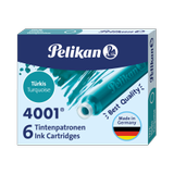 Tintenpatrone 4001® TP/6. Verwendung für Produkt: Patronenfüllhalter. Typbezeichnung der Tintenpatrone: Standardpatrone. Farbe: türkis. Ausführung des Inhalts mit Packung: Etui mit 6 Patronen.