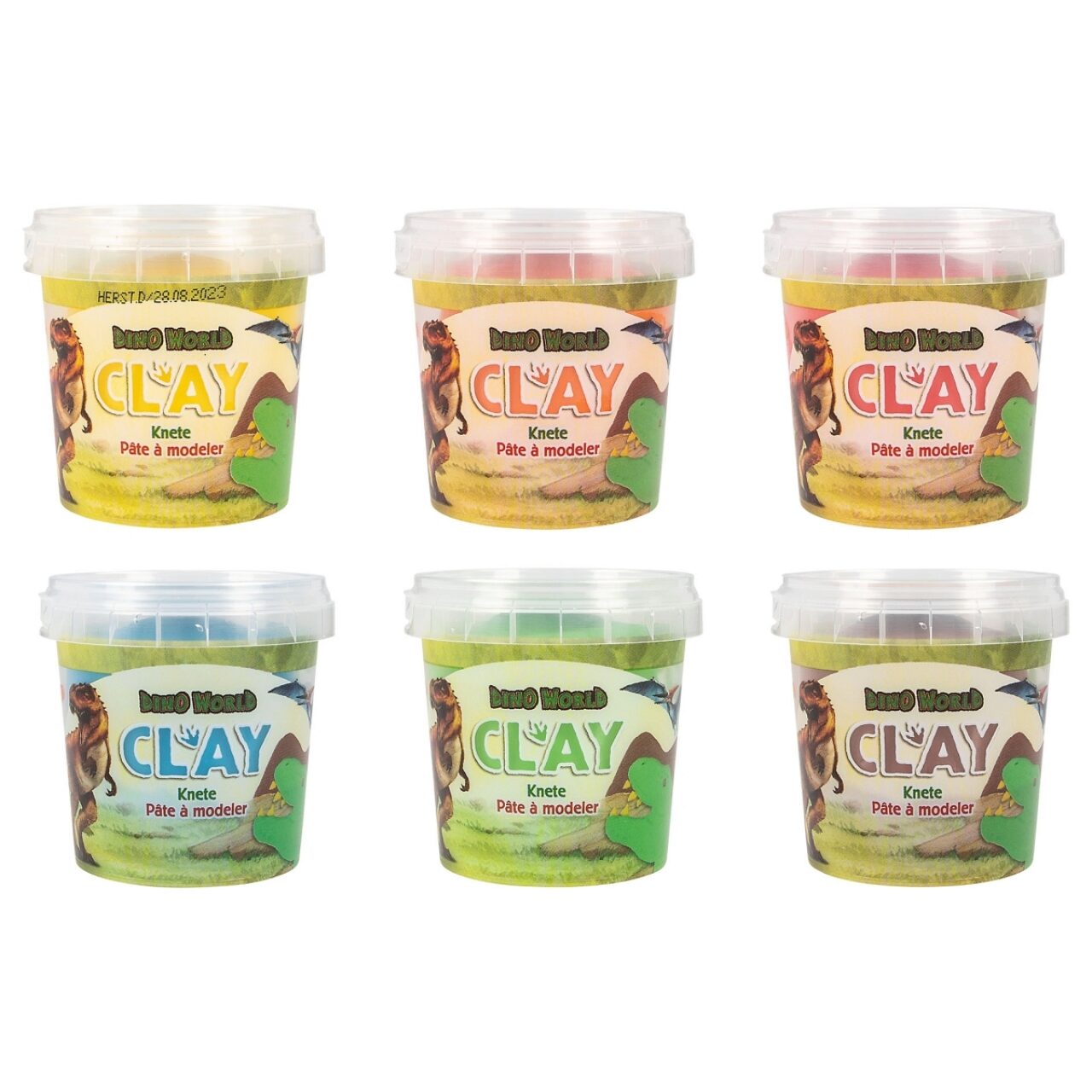 Knete für die Kleinsten: Die wunderbar weiche Knete von Dino World gibt es in 6 verschiedenen Farben (Gelb, Orange, Rot, Hellgrün, Blau, Braun).