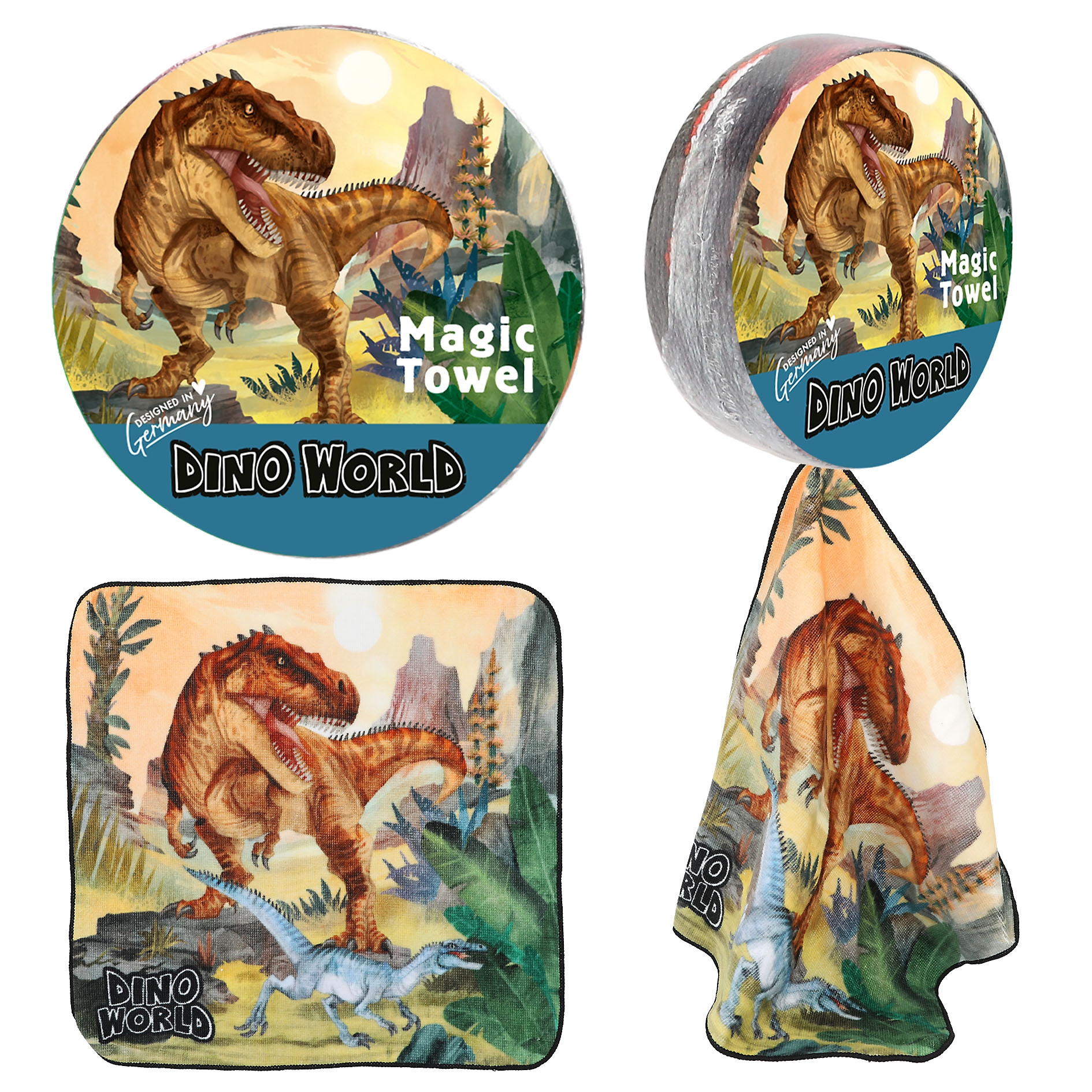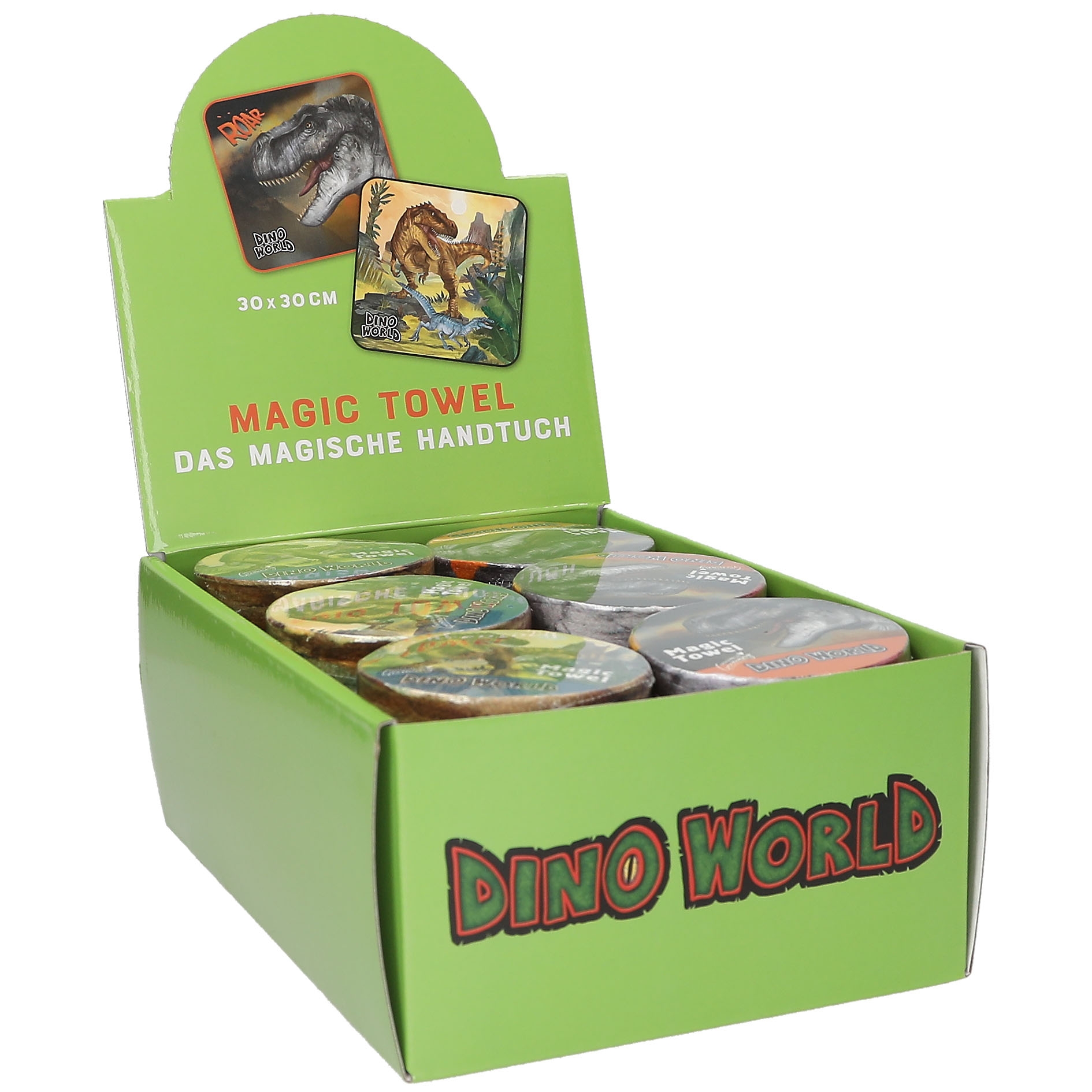 Das magische Handtuch von Dino World entfaltet sich im Wasserbad zu seiner vollen Größe (30x30 cm).
