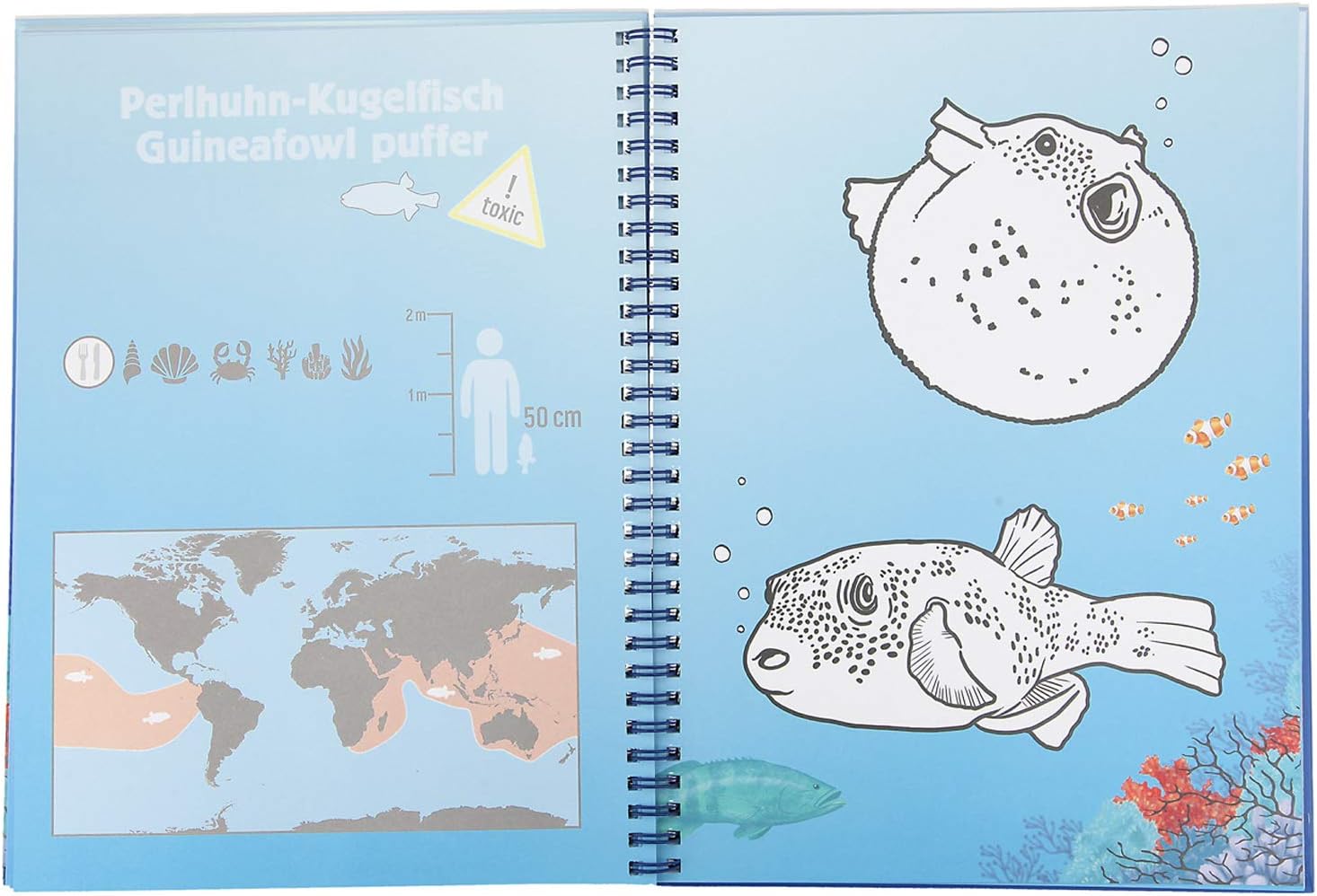 Zu jedem der 36 Ausmalmotive gibt es spannende Informationen zu den jeweiligen Meeresbewohnern.
