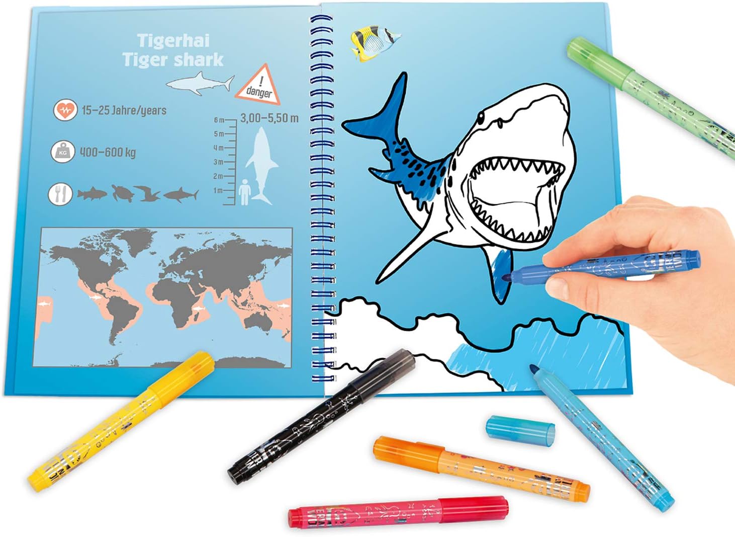 Produktinformationen "Dino World Malbuch Unterwasserwelt mit Stifte, Haifisch-Design, Depesche"