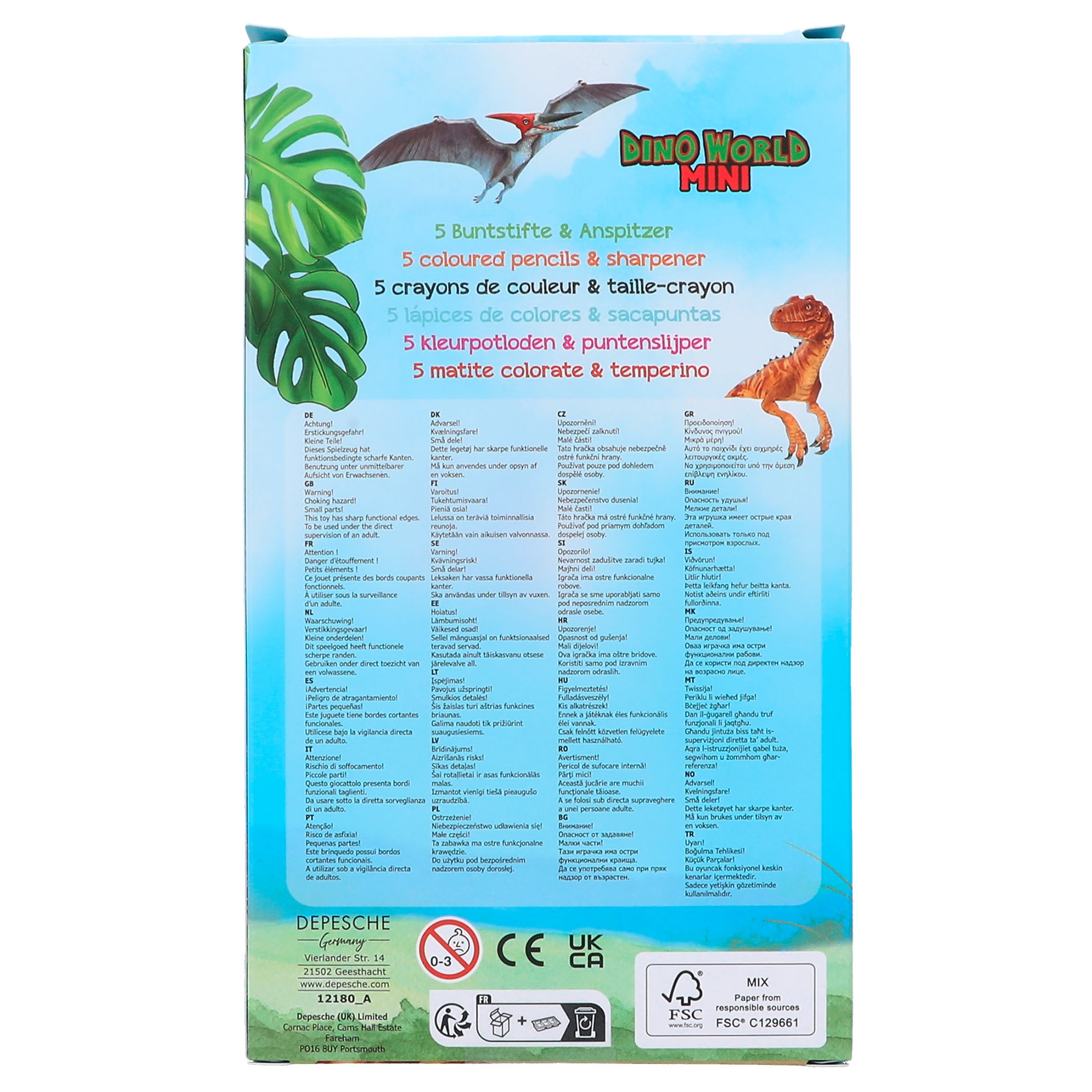 Herstellerinformationen zu "Dino World Mini Dino Buntstifte & Anspitzer, dicke Buntstifte mit Dinosauriermotive, Depesche"