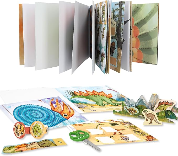 Das Kreativbuch von Dino World bietet 25 Seiten mit liebevoll illustrierten, kindgerechten Übungen, die den Umgang mit der Schere trainieren.