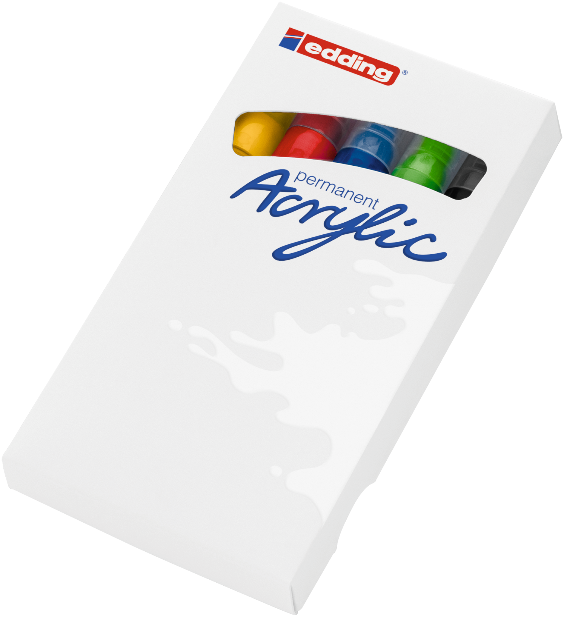Acrylmarker zum Malen auf hellen oder dunklen Oberflächen, ideal für Materialien wie Leinwand, Malpapier, Holz, Stein oder Terrakotta. Die Rundspitze hat eine Strichbreite von 2-3 mm. Die hochwertige pigmentierte Acrylfarbe auf Wasserbasis ist deckend, lichtbeständig, geruchsarm und nach dem Trocknen permanent. Das Set enthält die Farben schwarz, verkehrsrot, enzianblau, verkehrsgelb und gelbgrün. In hochwertigem wiederverwendbarem Etui.