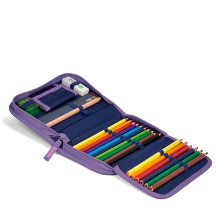 Im Federmäppchen finden Stifte & Bastelutensilien ihren Platz. Es ist mit 22 Teilen befüllt und damit besonders praktisch für den Schulstart. Ob Lineal, Radiergummi oder Spitzer, durch das Federmäppchen behalten die Kids den Überblick.