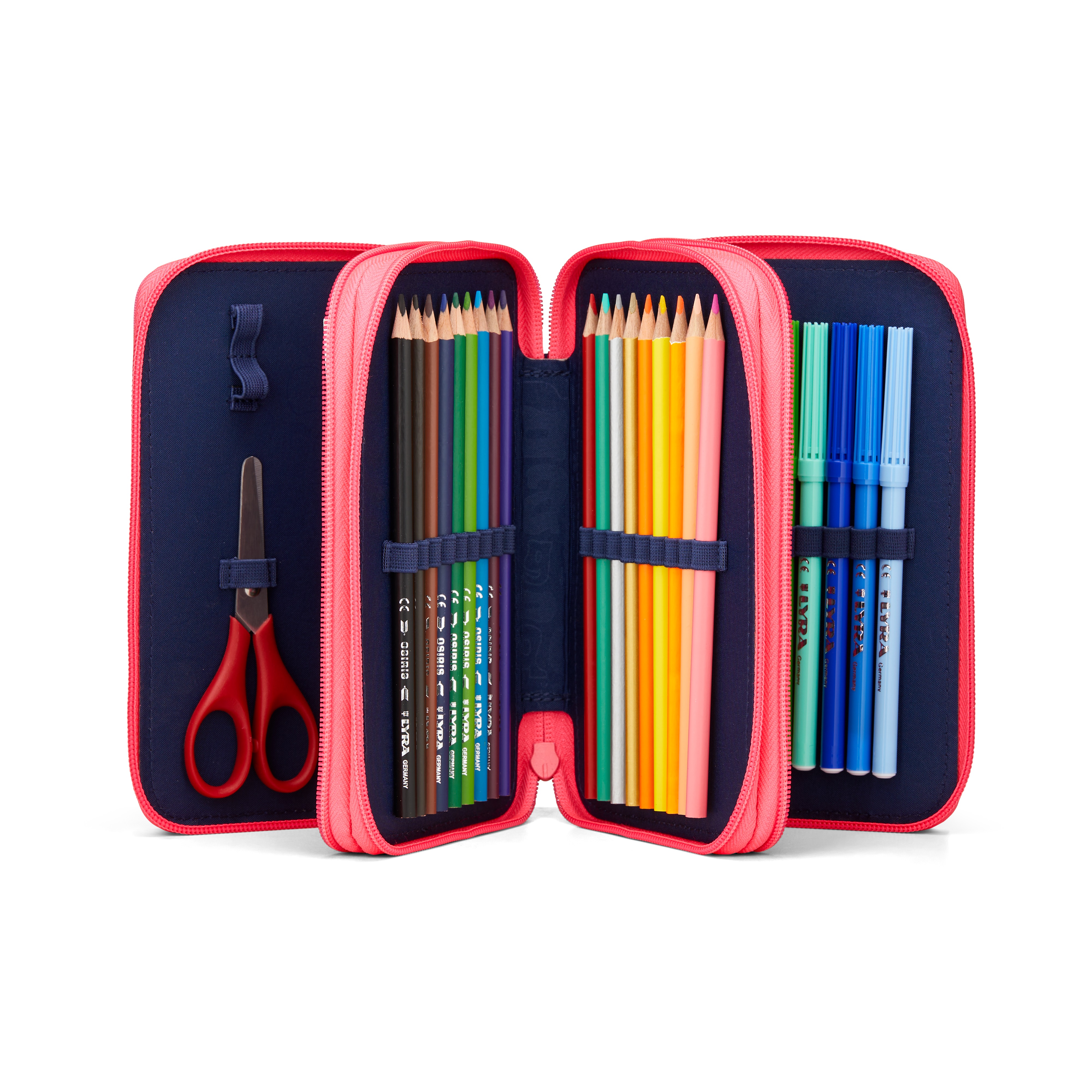 Stiftechaos adé! Im Maxi-Mäppchen finden alle Bastelutensilien & Stifte ihren Platz. Es ist mit 40 Teilen befüllt und ist besonders bei den Kids ab Klasse 2 beliebt. In den drei Fächern sind unter anderem 18 Bunt- & 18 Filzstifte enthalten.
