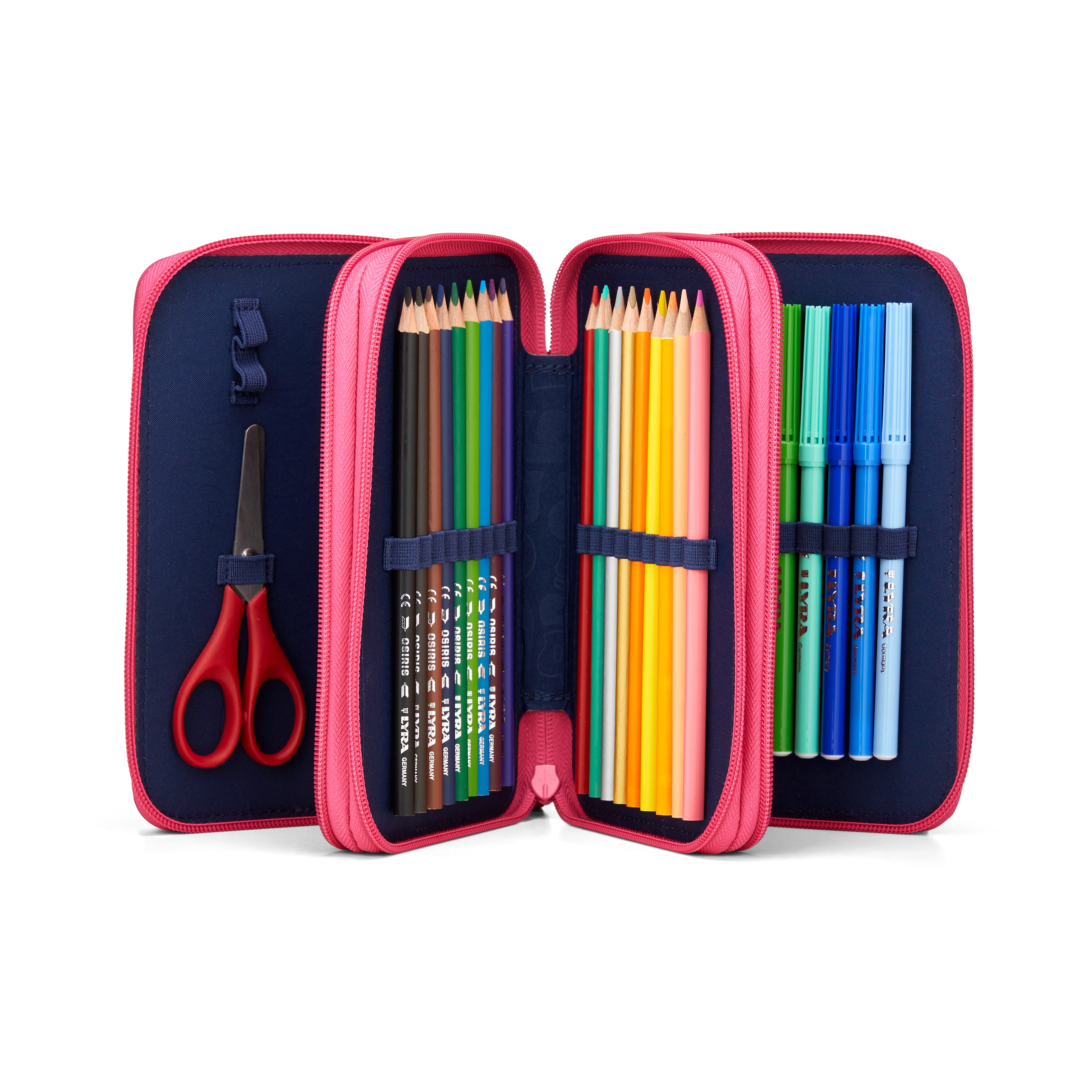 Stiftechaos adé! Im Maxi-Mäppchen finden alle Bastelutensilien & Stifte ihren Platz. Es ist mit 40 Teilen befüllt und ist besonders bei den Kids ab Klasse 2 beliebt. In den drei Fächern sind unter anderem 18 Bunt- & 18 Filzstifte enthalten.