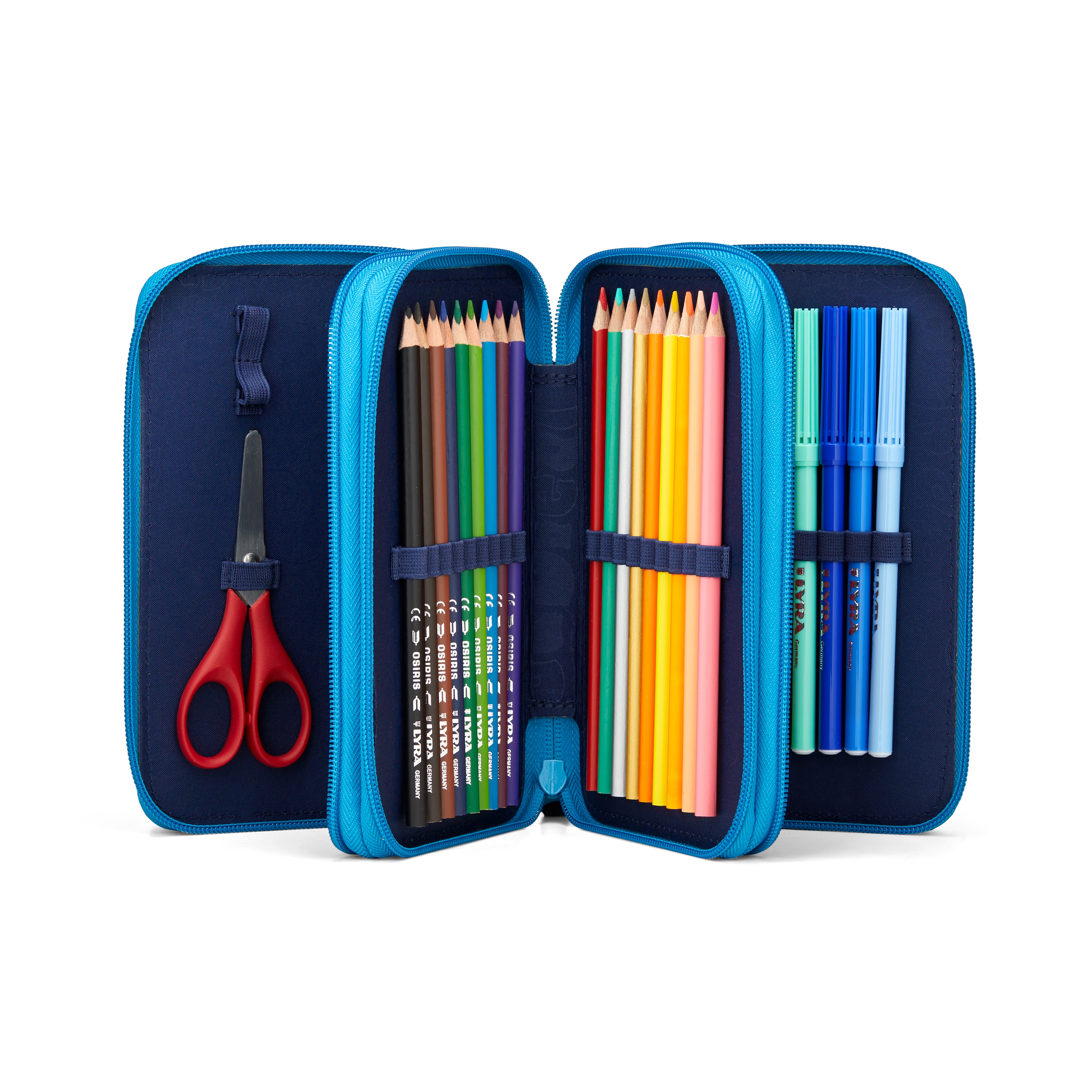 Stiftechaos adé! Im Maxi-Mäppchen finden alle Bastelutensilien & Stifte ihren Platz. Es ist mit 40 Teilen befüllt und ist besonders bei den Kids ab Klasse 2 beliebt. In den drei Fächern sind unter anderem 18 Bunt- & 18 Filzstifte enthalten.