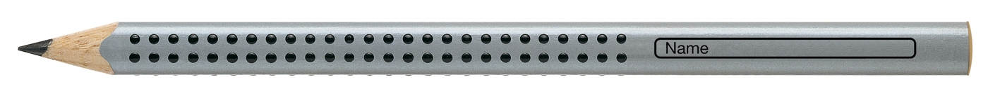 Bleistift JUMBO GRIP. Ausführung der Schaftform: ergonomische Dreikantform. Gespitzt. Schaft lackiert. Lackierung auf Wasserbasis gegeben. Bleistift in ergonomischer Dreikantform mit patentierter Soft Grip Zone für sicheren Halt. Länge: 175 mm. Farbe des Schaftes: silber. Bezeichnung der Härte: B.
