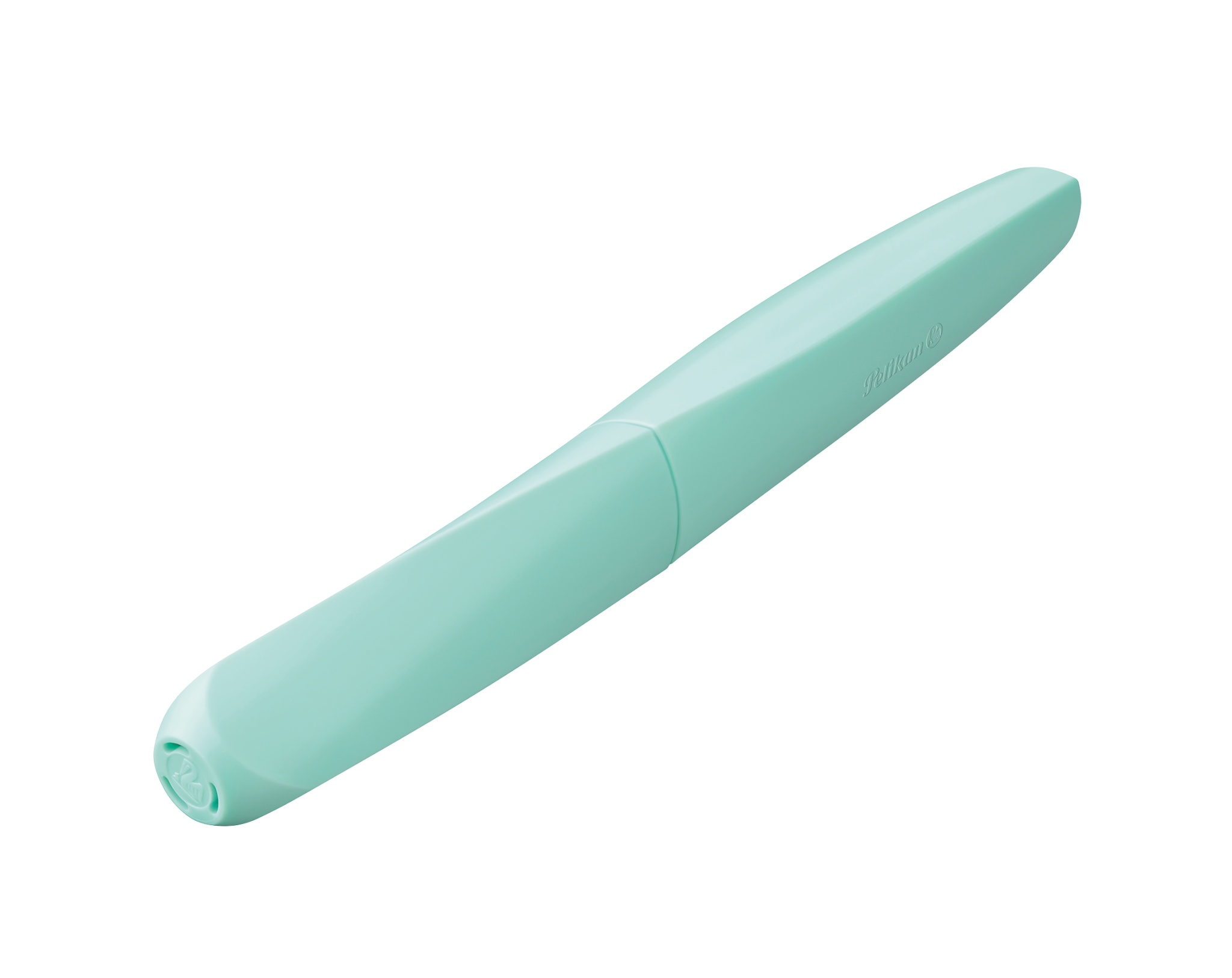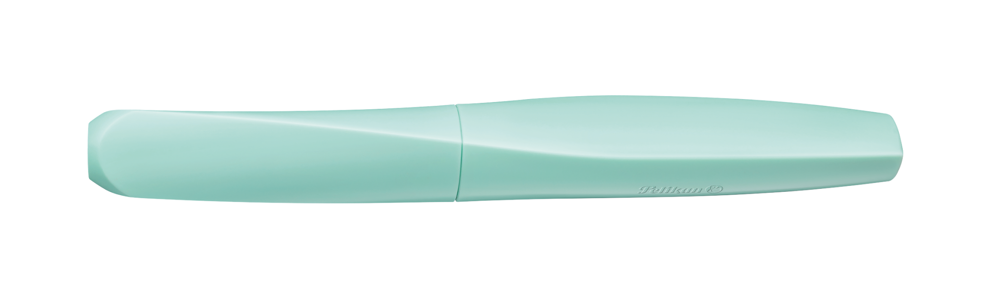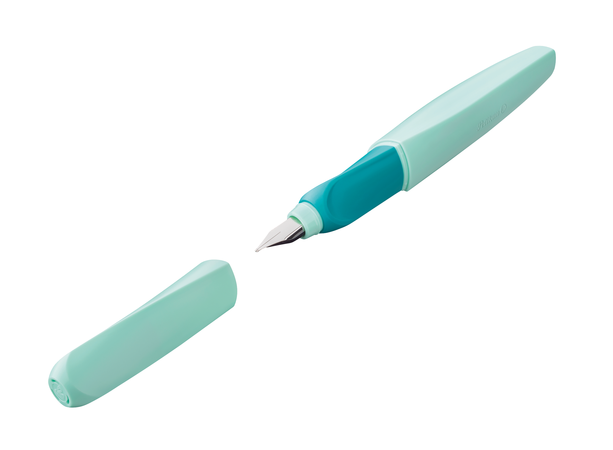 Twist Neo Mint, Feder M. Gedrehter Look, für Rechts- und Linkshänder. Ausführung Patrone und Tinte: Schreibfarbe von Schreibgeräten: blau. Pelikan 4001. Schreibfeder Material / Stärke: Edelstahl. Ausführung der Feder: M. Ausführung Füller: Material des Schaftes: Kunststoff , Farbe des Schaftes: neo mint, Ausführung der Griffzone: ergonomische Form.