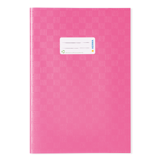 Heftschoner aus Polypropylen-Folie, mit Strukturprägung, solide verarbeitet, mit Beschriftungsetikett.