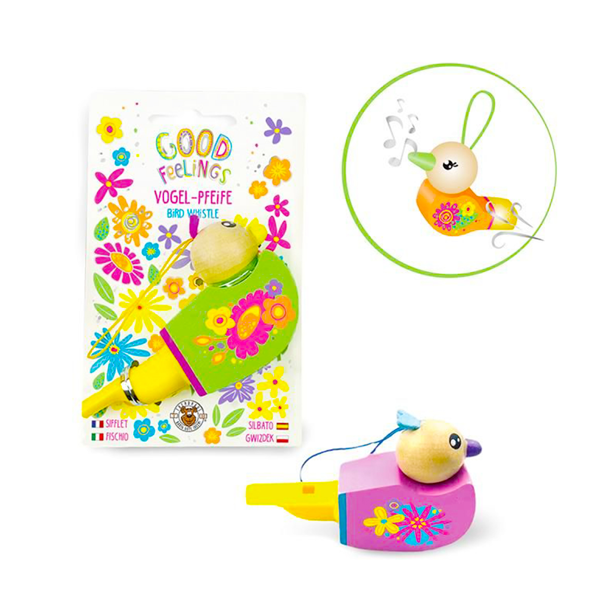 Kinder Zwitscher Pfeife, GFH Vogel-Pfeife aus Holz, grün, pink oder orange, Trendhaus
