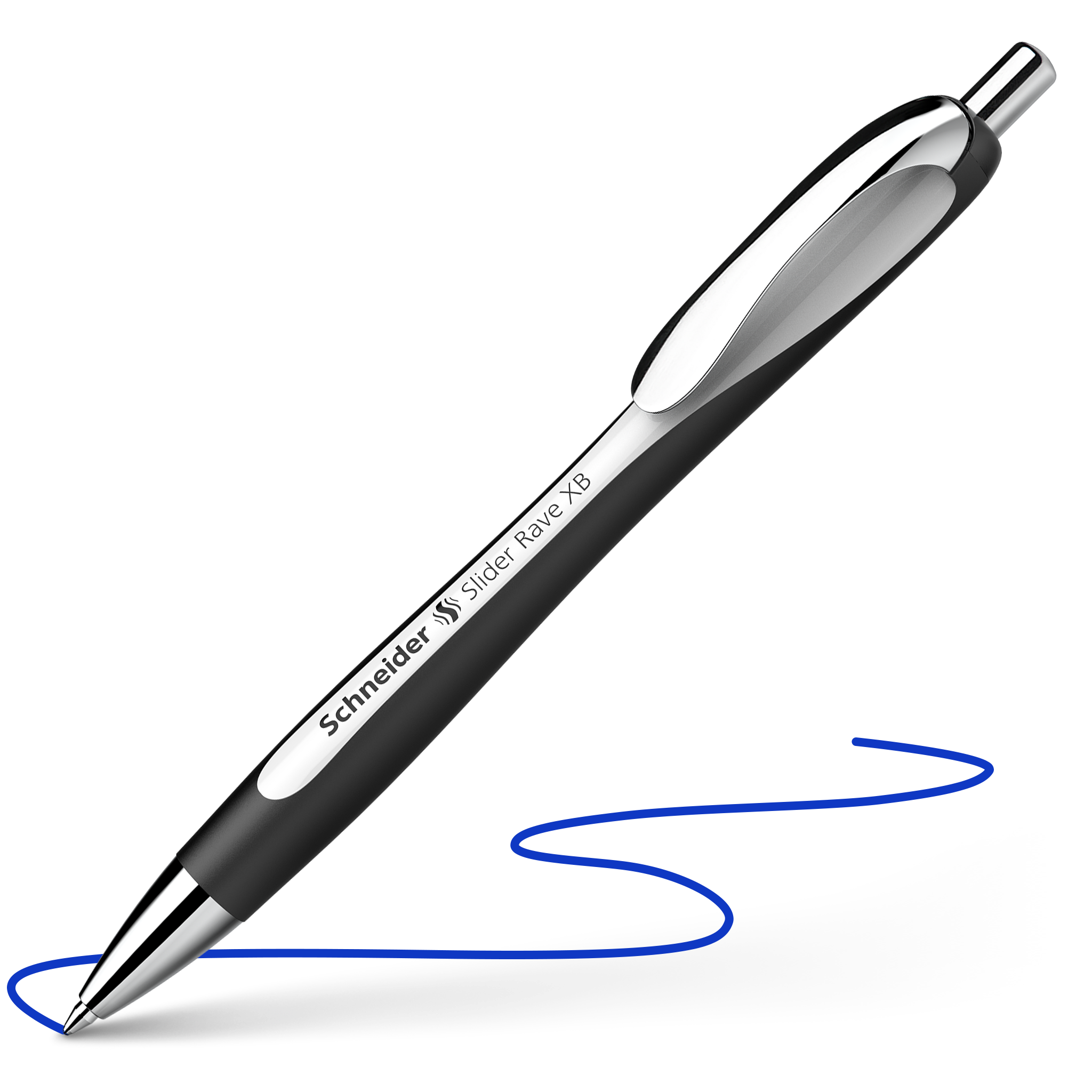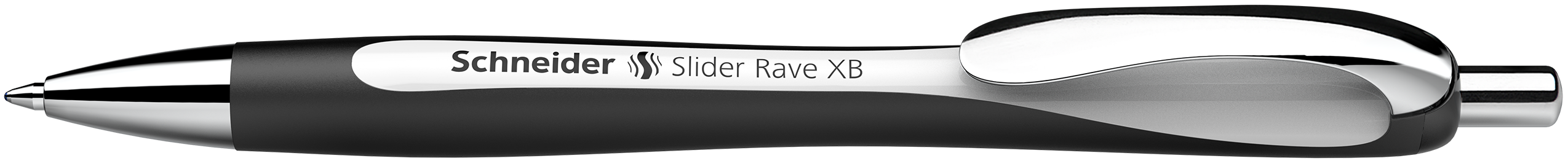 Kugelschreiber Slider Rave, Druckmechanik, Typbezeichnung der Mine: Slider 755 (ISO-Format G2) mit verschleißfester Edelstahlspitze, Ausführung Mine: XB, blau, dokumentenecht, Mine auswechselbar, Ausführung Stift: Kunststoff, ergonomische Form mit gummierter Oberfläche, Clip: Metall, silber, Limitierte Sonderedition. Viscoglide®-Technologie für außergewöhnlich weiches und gleitendes Schreiben. Schneider Kugelschreiber und Minen mit dem Plug+Play-Symbol sind untereinander kompatibel. Das macht den Minenwechsel spielend einfach, Farbe des Schaftes: weiß-schwarz