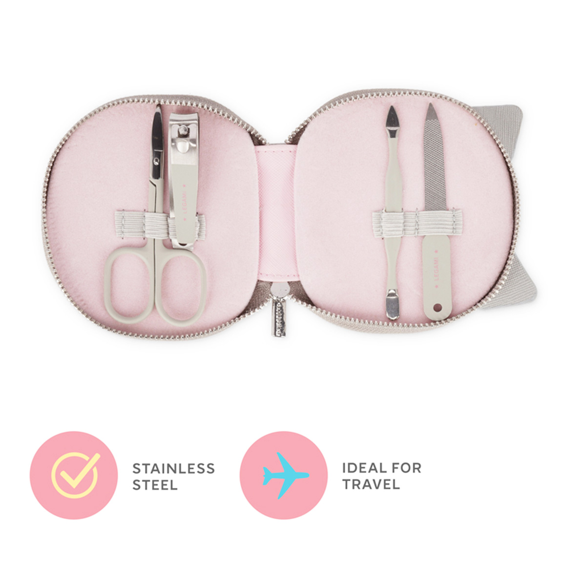 Das Set enthält alles, was Sie für die perfekte Maniküre brauchen: Schere, Nagelknipser, Feile und Nagelhautschieber.