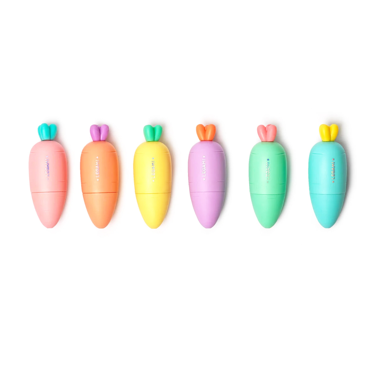 Legami Textmarker Karotten, Mini Textmarker im 6er-Set in Karottenform Carrate Team