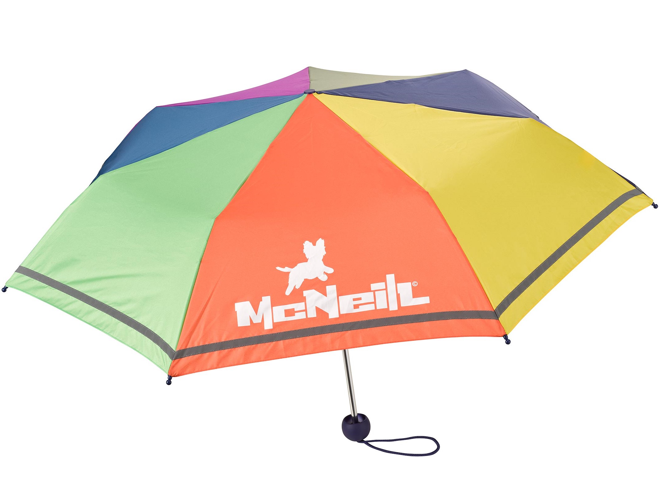 Mit dem McNeill Taschenschirm ist man bestens vor Regen geschützt. Aufgrund seines geringen Gewichts ist er sehr leicht zu tragen. Mit Hülle, so dass der Taschenschirm problemlos im Schulranzen transportiert werden kann. Für mehr Sicherherit im Straßenverkehr mit reflektierenden Elementen.