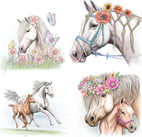 20 wunderschöne Pferdemotive zum Ausmalen.