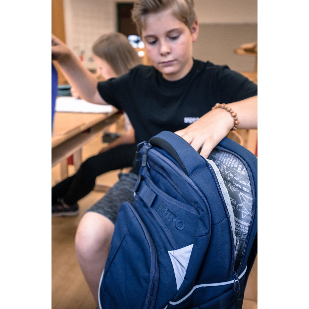 Im geräumigen Hauptfach des Nitro Schulrucksacks verstaust du Schulbücher, Hefte, einen Block und das Federmäppchen bequem und praktisch.