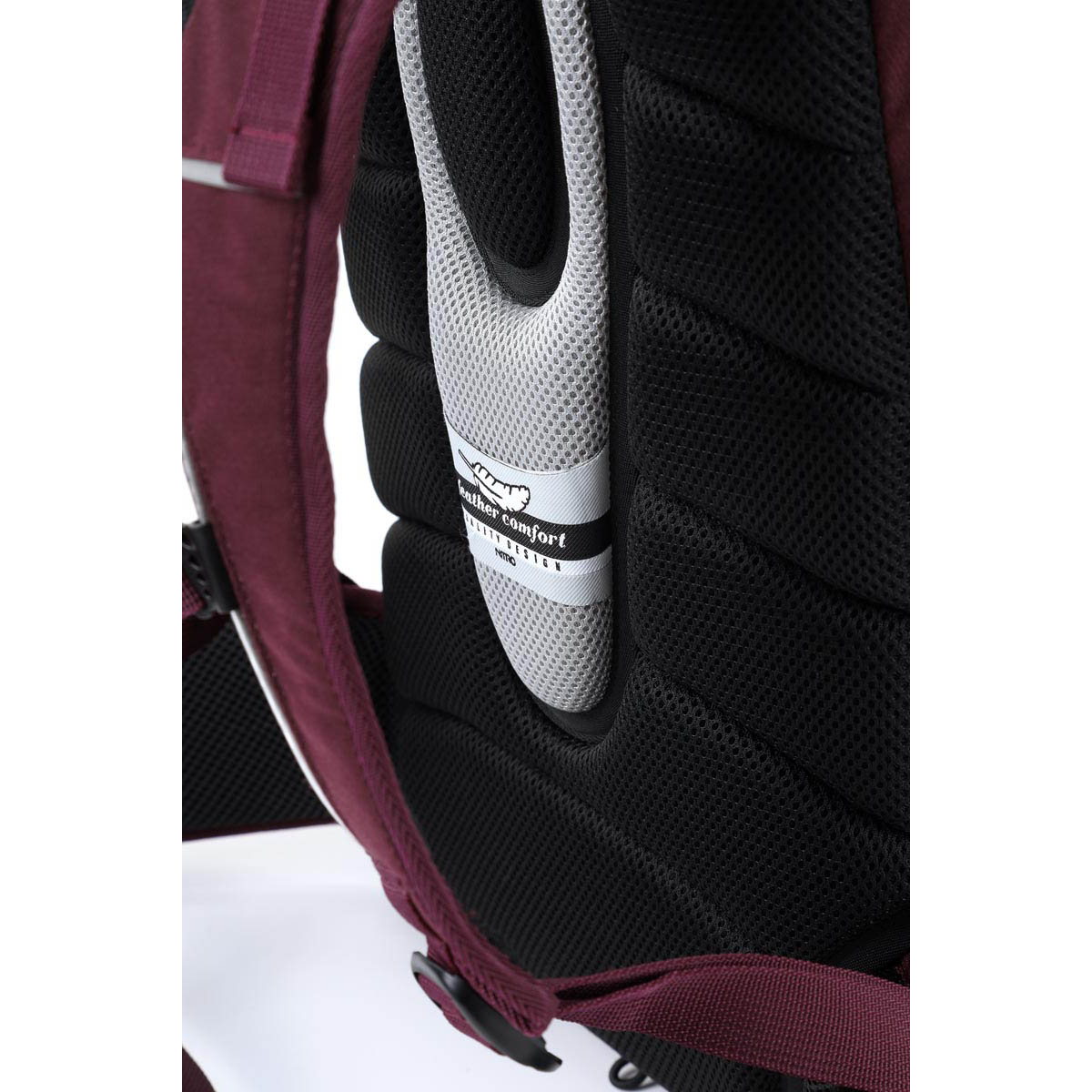- Atmungsaktives, ergonomisch geformtes Rückenteil