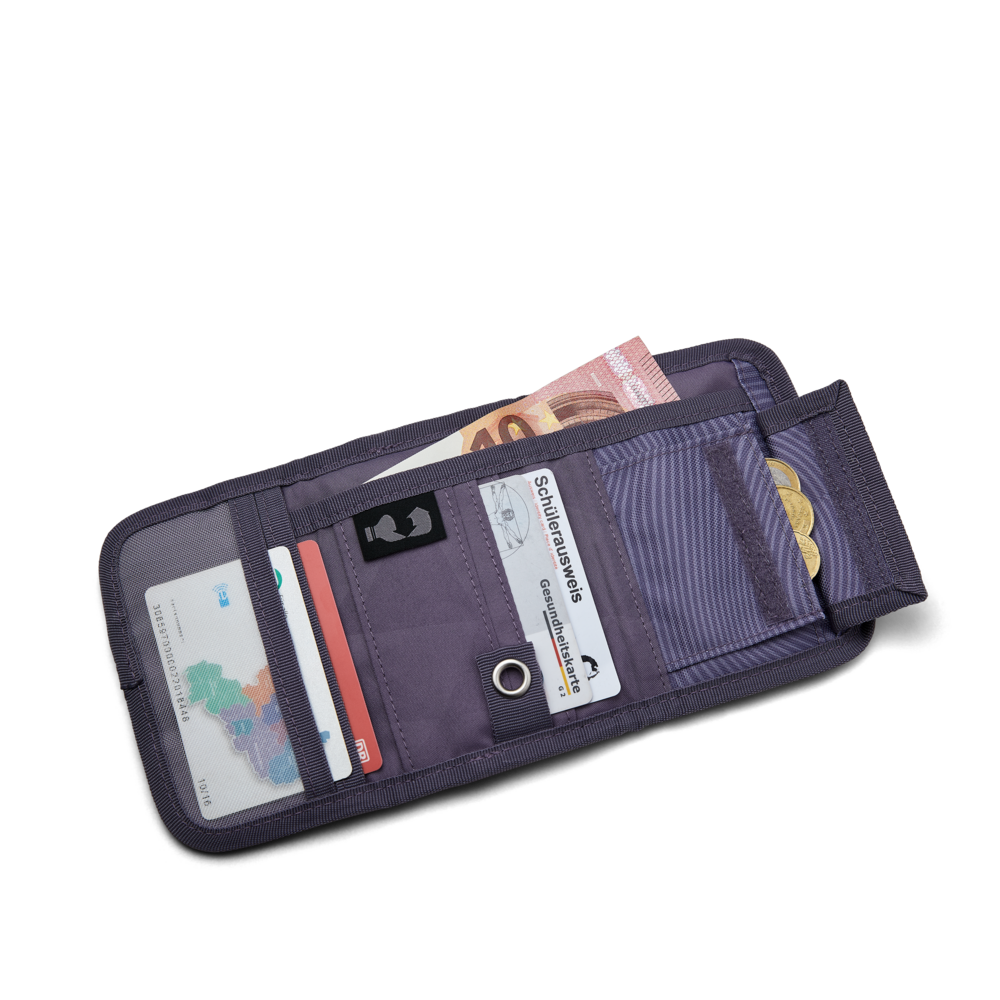 Kennst Du die Geldbeutel von satch? Jeder satch Geldbeutel ist komplett aufklappbar. Auf der Innenseite findest Du ein Fach für Münzen, das Du mit einem Klappdeckel verschließt und mehrere Einsteckfächer für Geldscheine und Busfahrkarten. Die Rückseite verfügt über ein transparentes Sichtfenster mit Reißverschluss, hinter dem Du zum Beispiel Deinen Schülerausweis verstauen kannst. Damit Du Deinen Geldbeutel im Schulrucksack, Sportrucksack oder der Jacke sichern kannst, ist dieser mit einer Öse zum Befestigen von Ketten ausgestattet.
