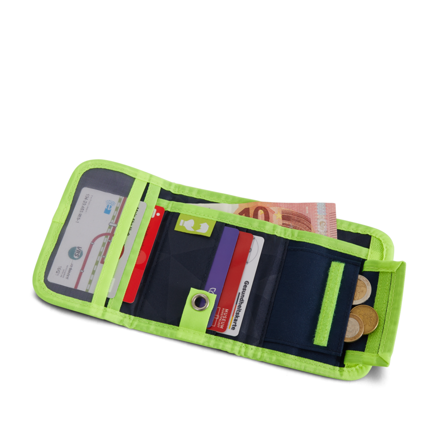 satch Geldbeutel: Viel Platz und ein klasse Design - Kennst Du die Geldbeutel von satch? Jeder satch Geldbeutel ist komplett aufklappbar. Auf der Innenseite findest Du ein Fach für Münzen, das Du mit einem Klappdeckel verschließt und mehrere Einsteckfächer für Geldscheine und Busfahrkarten. Die Rückseite verfügt über ein transparentes Sichtfenster mit Reißverschluss, hinter dem Du zum Beispiel Deinen Schülerausweis verstauen kannst. Damit Du Deinen Geldbeutel im Schulrucksack, Sportrucksack oder der Jacke sichern kannst, ist dieser mit einer Öse zum Befestigen von Ketten ausgestattet. - Getreu dem Motto Get your style erhältst Du die satch Geldbeutel in vielen Designs mit den tollsten Mustern. Das Angebot reicht vom bunten Karo und lustigen Punkten bis hin zu grafischen Mustern und romantischen Blümchendesigns oder auch ganz schlicht in einer Deiner Lieblingsfarben. - Alle Produkte von satch entstammen einer gewissenhaften Herstellung und sind frei von schädlichen Chemikalien und Zusatzstoffen. Zur Herstellung eines Geldbeutels wird eine PET-Flasche mit 0,5 l Inhalt benötigt. Das spart Ressourcen und hilft bei der Reduktion von Plastikmüll. Und damit Du nicht jedes Schulhalbjahr ein neues Portemonnaie brachst, sind satch Geldbeutel wasser- und schmutzabweisend.