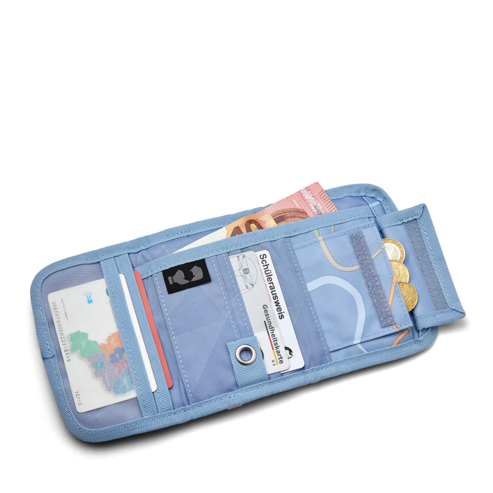 Kennst Du die Geldbeutel von satch? Jeder satch Geldbeutel ist komplett aufklappbar. Auf der Innenseite findest Du ein Fach für Münzen, das Du mit einem Klappdeckel verschließt und mehrere Einsteckfächer für Geldscheine und Busfahrkarten. Die Rückseite verfügt über ein transparentes Sichtfenster mit Reißverschluss, hinter dem Du zum Beispiel Deinen Schülerausweis verstauen kannst. Damit Du Deinen Geldbeutel im Schulrucksack, Sportrucksack oder der Jacke sichern kannst, ist dieser mit einer Öse zum Befestigen von Ketten ausgestattet.