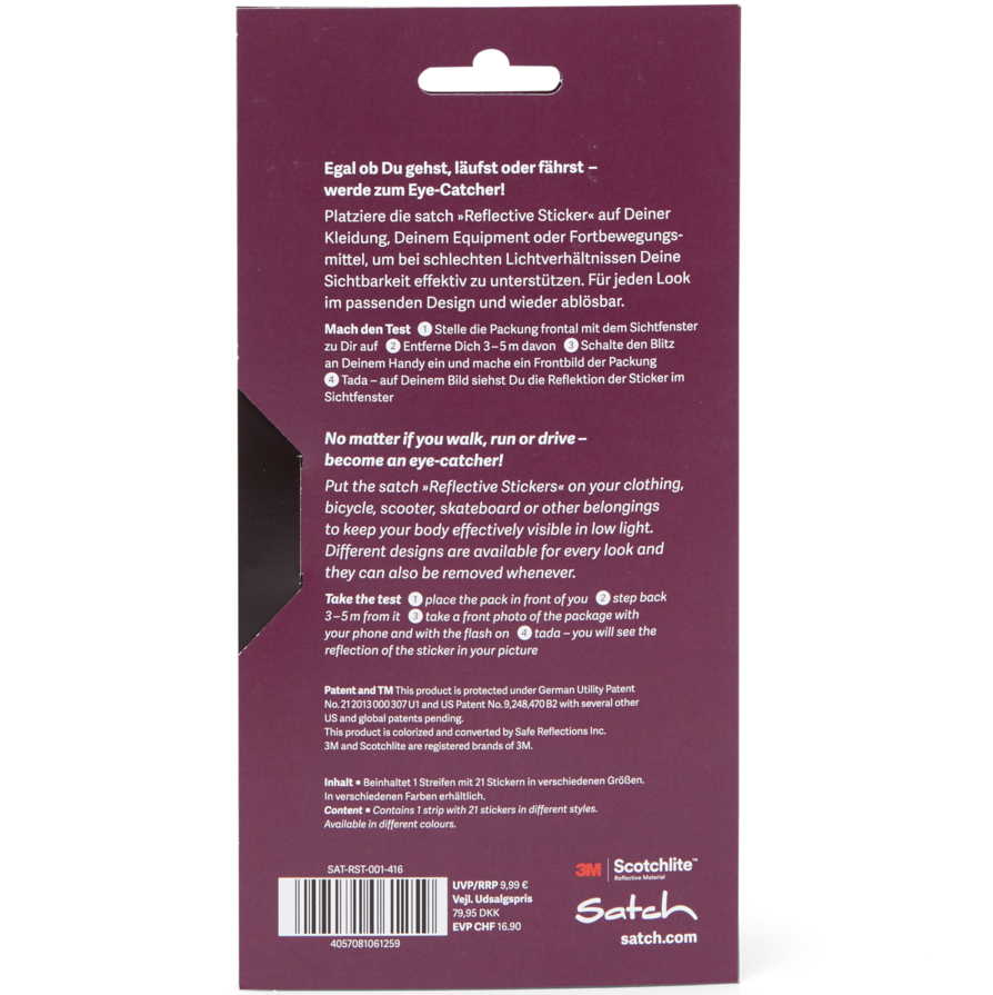 Immer & überall gut sichtbar sein? Die satch Reflective Sticker reflektieren, wenn sie angestrahlt werden und unterstützen so effektiv die Sichtbarkeit bei schlechten Lichtverhältnissen. Ob Rucksack, Helm, Kleidung oder auf Deinem Fahrrad - die satch Reflective Sticker sind vielseitig platzierbar und bringen Dich gut sichtbar durch Herbst & Winter!