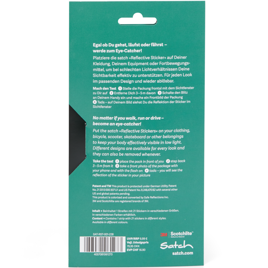 Immer & überall gut sichtbar sein? Die satch Reflective Sticker reflektieren, wenn sie angestrahlt werden und unterstützen so effektiv die Sichtbarkeit bei schlechten Lichtverhältnissen. Ob Rucksack, Helm, Kleidung oder auf Deinem Fahrrad - die satch Reflective Sticker sind vielseitig platzierbar und bringen Dich gut sichtbar durch Herbst & Winter!