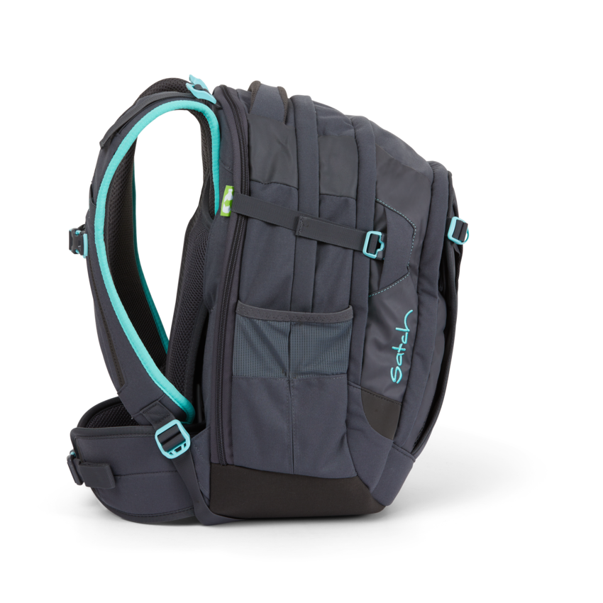 Was den satch match zum Allround-Rucksack macht? Zwei Hauptfächer, ein Organisierfach und der praktische Frontflap. Diese Klappe kannst Du öffnen und einen Helm oder einen Ball verstauen. Ebenso praktisch zeigt sich der Schulrucksack, wenn es um die anderen Fächer geht: Du findest Platz für Deine Schulbücher, einen Laptop, Din A4-Ordner, Hefte und vieles mehr. Für die besonders langen Tage kannst Du den 30 Liter Rucksack noch erweitern. Mithilfe des Organisierfaches ganz vorne und seiner vielen kleinen Fächer und Reißverschlusstaschen kannst Du Deine Utensilien gut sortieren – so findest Du auf einen Blick, was Du suchst. Außerdem ist der satch match auf Deine Körpergröße anpassbar: Träger, Brust- und Hüftgurt kannst Du auf Dich einstellen und das Rückenteil ist von 1,40 m anpassbar auf alle Größen bis hin zu 1,80 m.