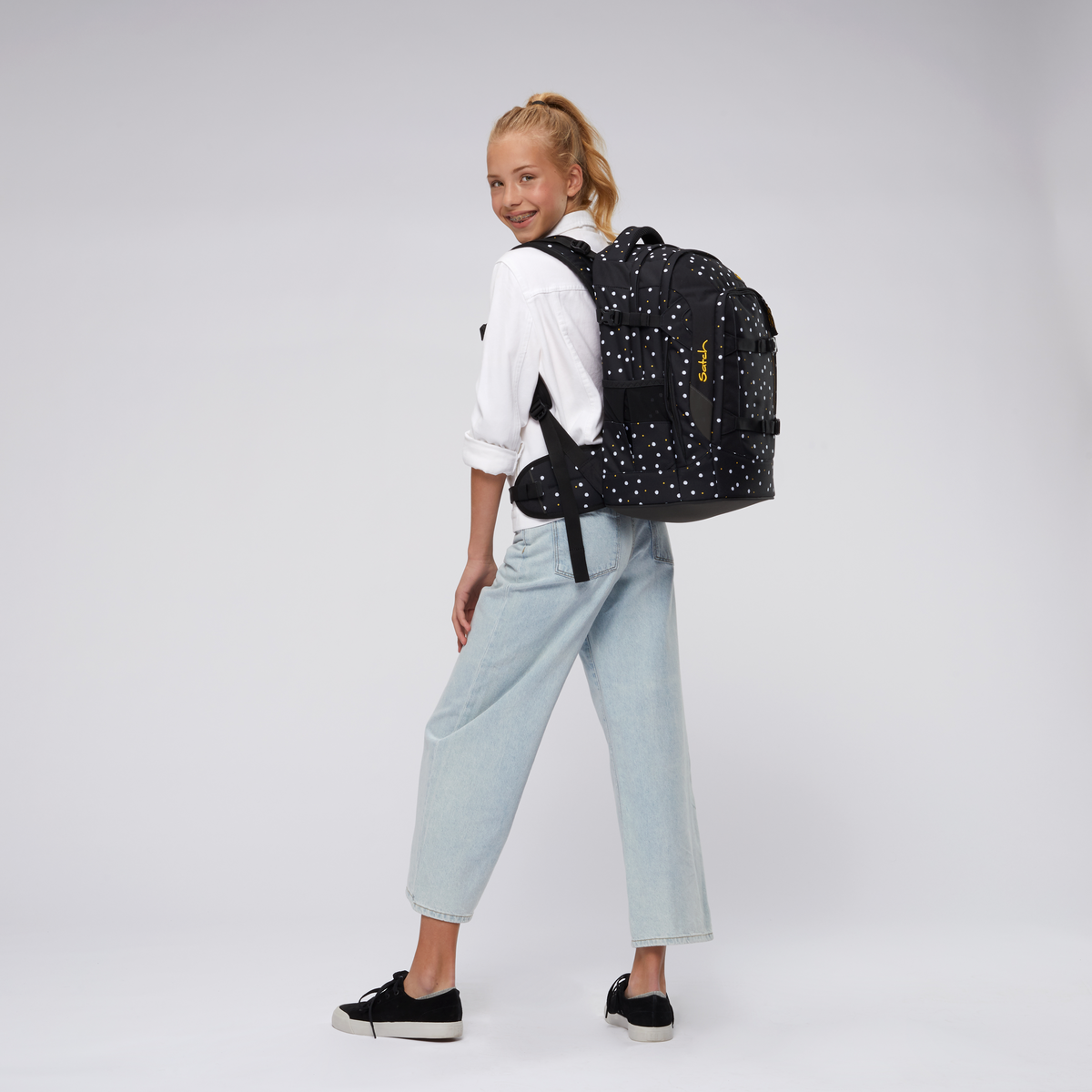 satch pack - - - satch entlastet und wächst mit: Aus dem Bergsport auf den Schülerrücken: Das satch Tragesystem garantiert die Verlagerung des Gewichts von den Schultern auf den stabilen Beckenbereich. Passgenaue Einstellung von 1,40 m – 1,80 m.